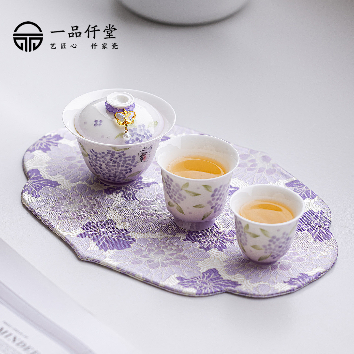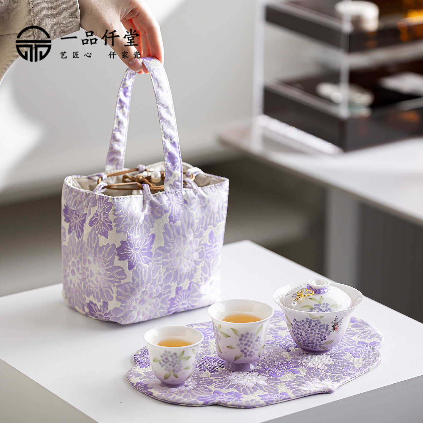 📚 绣球花女士旅行茶具套装一壶二杯便携式户外露营盖碗茶杯伴手礼物