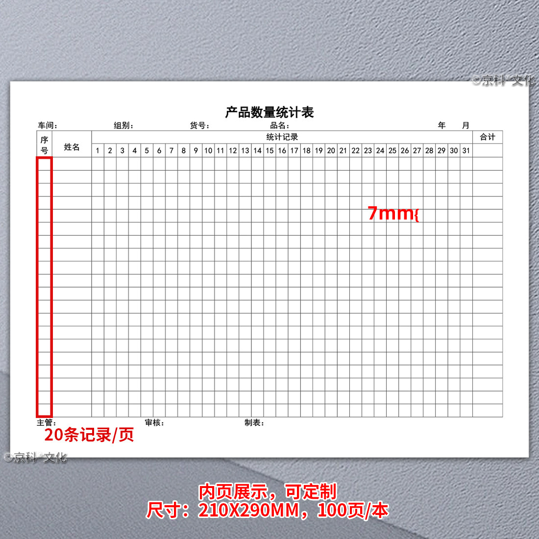 📚 产品数量统计表工厂车间员工数量记录本车间生产月报表物品存货计数表物品月销统计记录表商品销售月度登记表