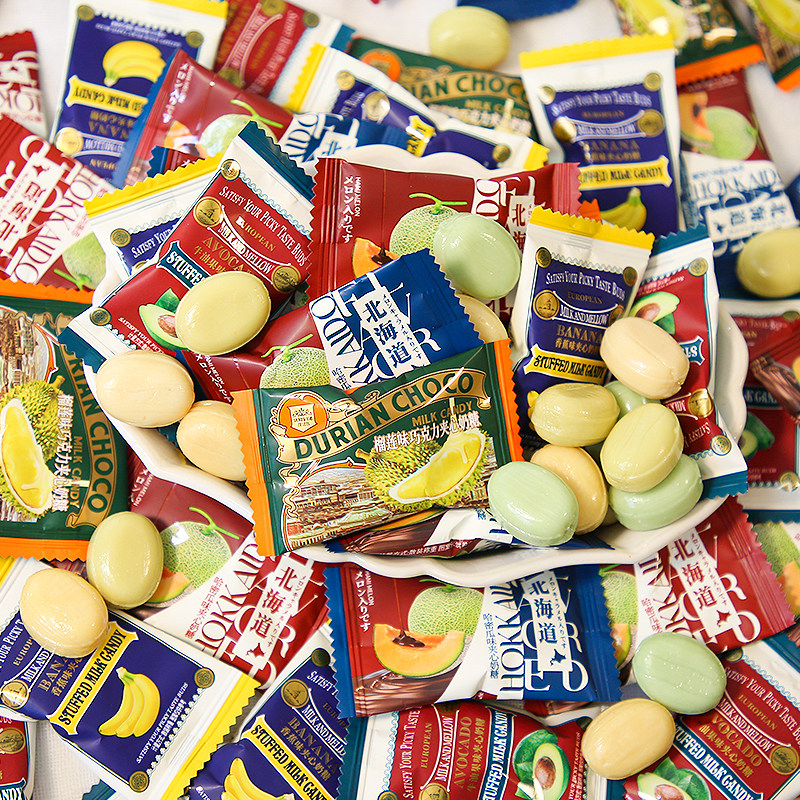 📚 彩虹日记夹心奶糖香蕉牛油果榴莲味水果味硬糖结婚糖果喜糖零食