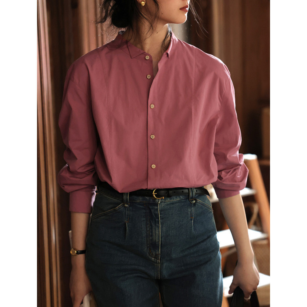 📚 法式甜美气质粉色小翻领挺括衬衫女春夏设计感文艺叠穿长袖小上衣