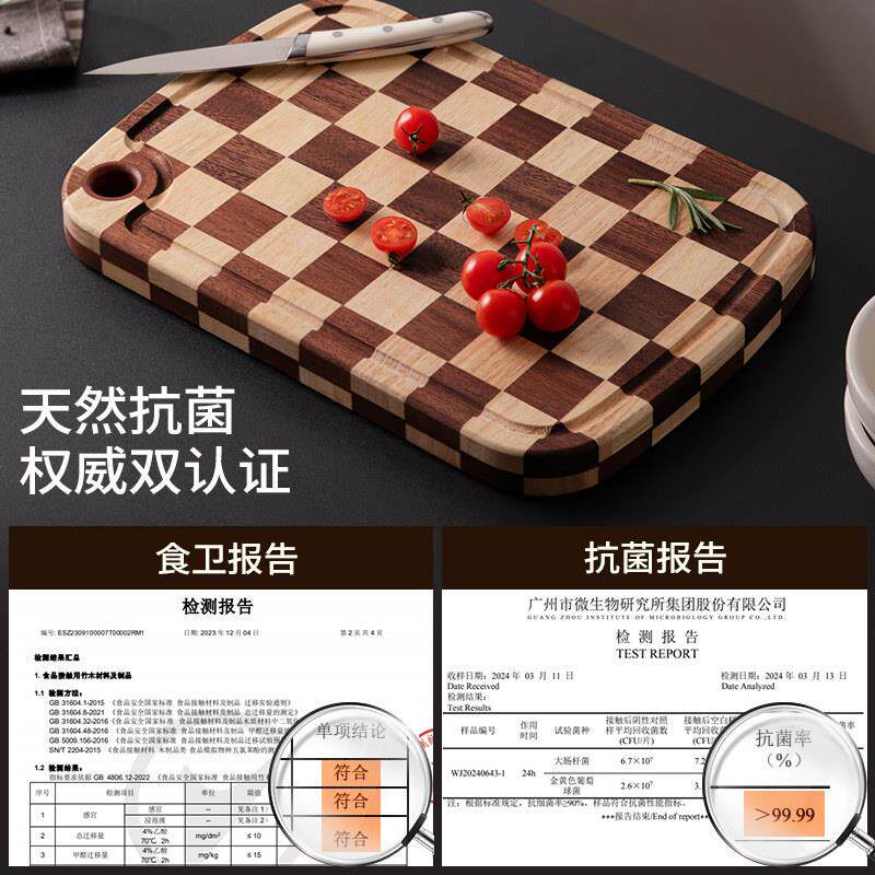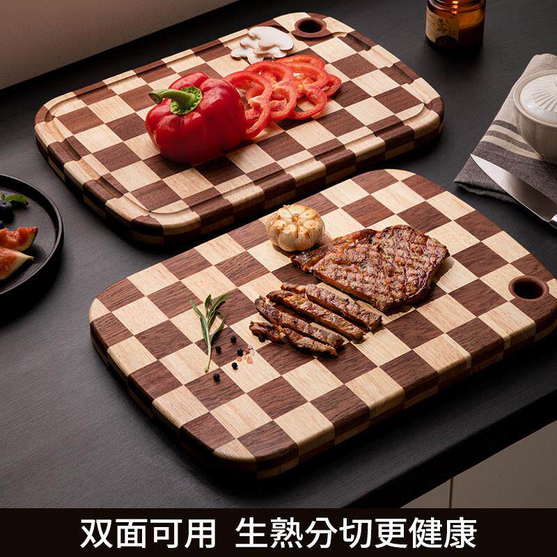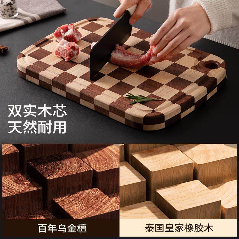 📚 素味乌檀木棋盘格菜板防霉抗菌家用实木水果砧板托盘切菜板案板