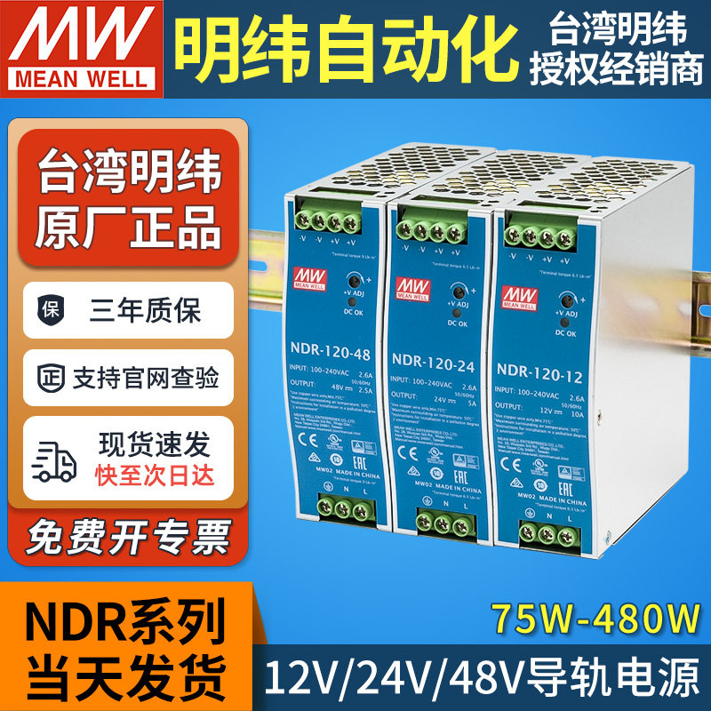 📚 明纬NDR导轨式12V48V24V开关电源75/120/240W直流DRP变压器DR 10A