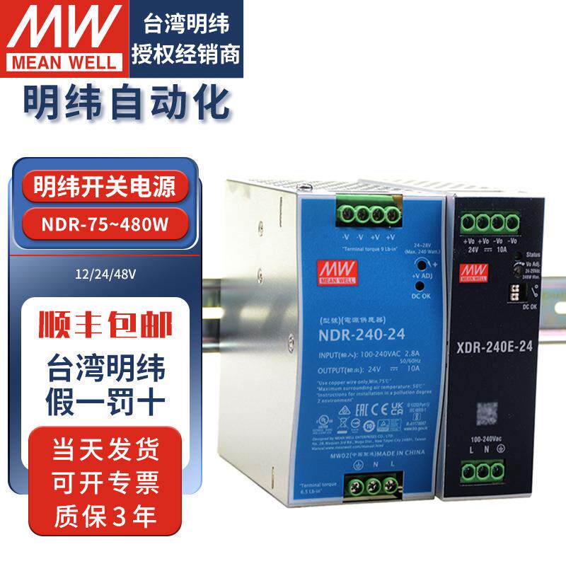 📚 明纬开关电源24V导轨式NDR120W240W480W12V10A大功率直流LED驱动