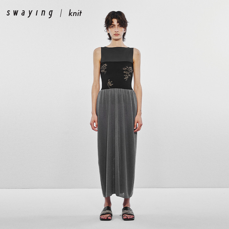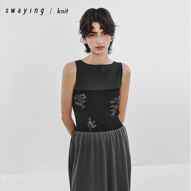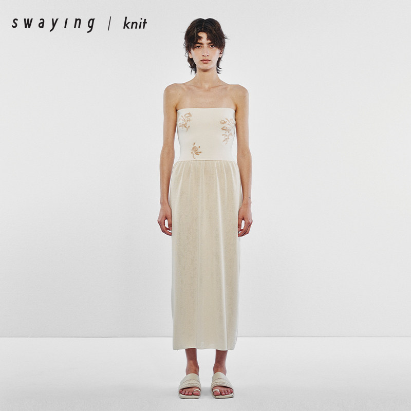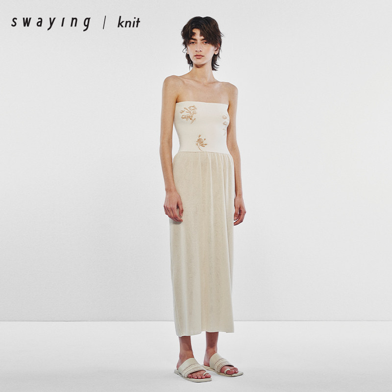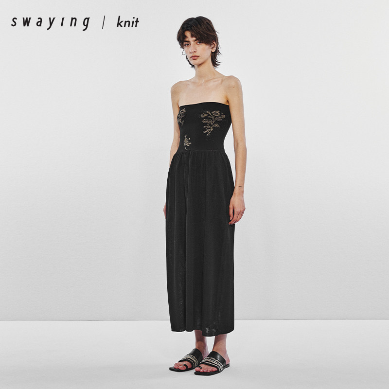 📚 SWAYING官方 花卉提花抹胸连身裙 25PF早秋气质百搭显瘦连衣裙女
