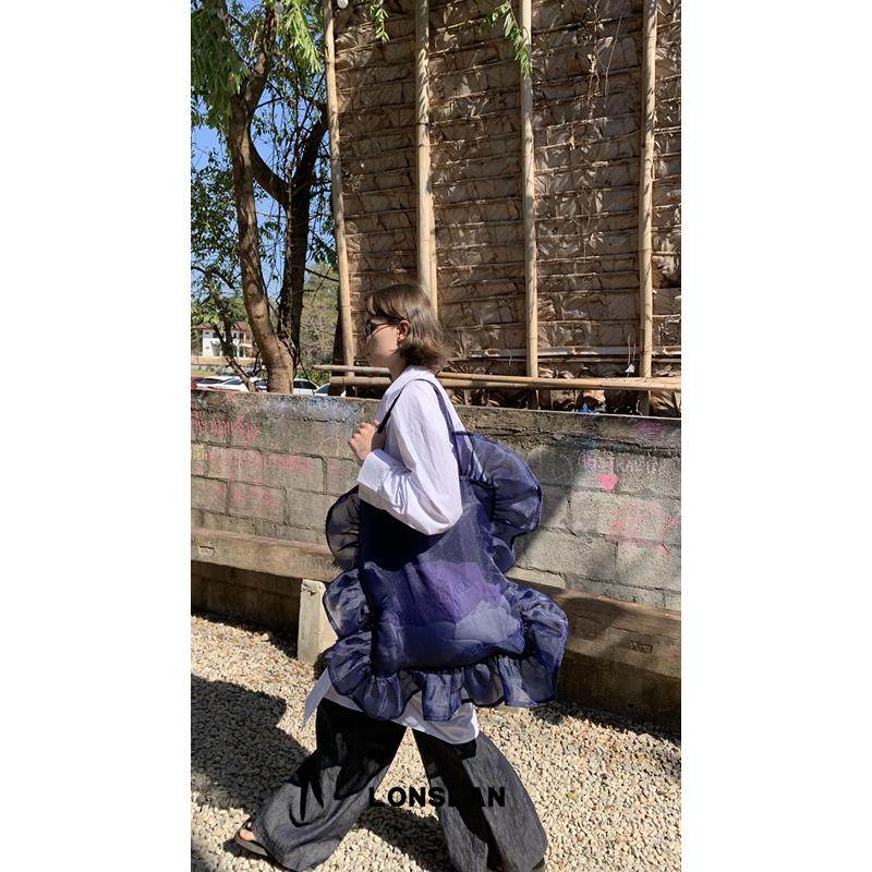 📚 LONSLAN 2025春夏新款荷叶边网纱大包大容量托特包仙女风女士手袋