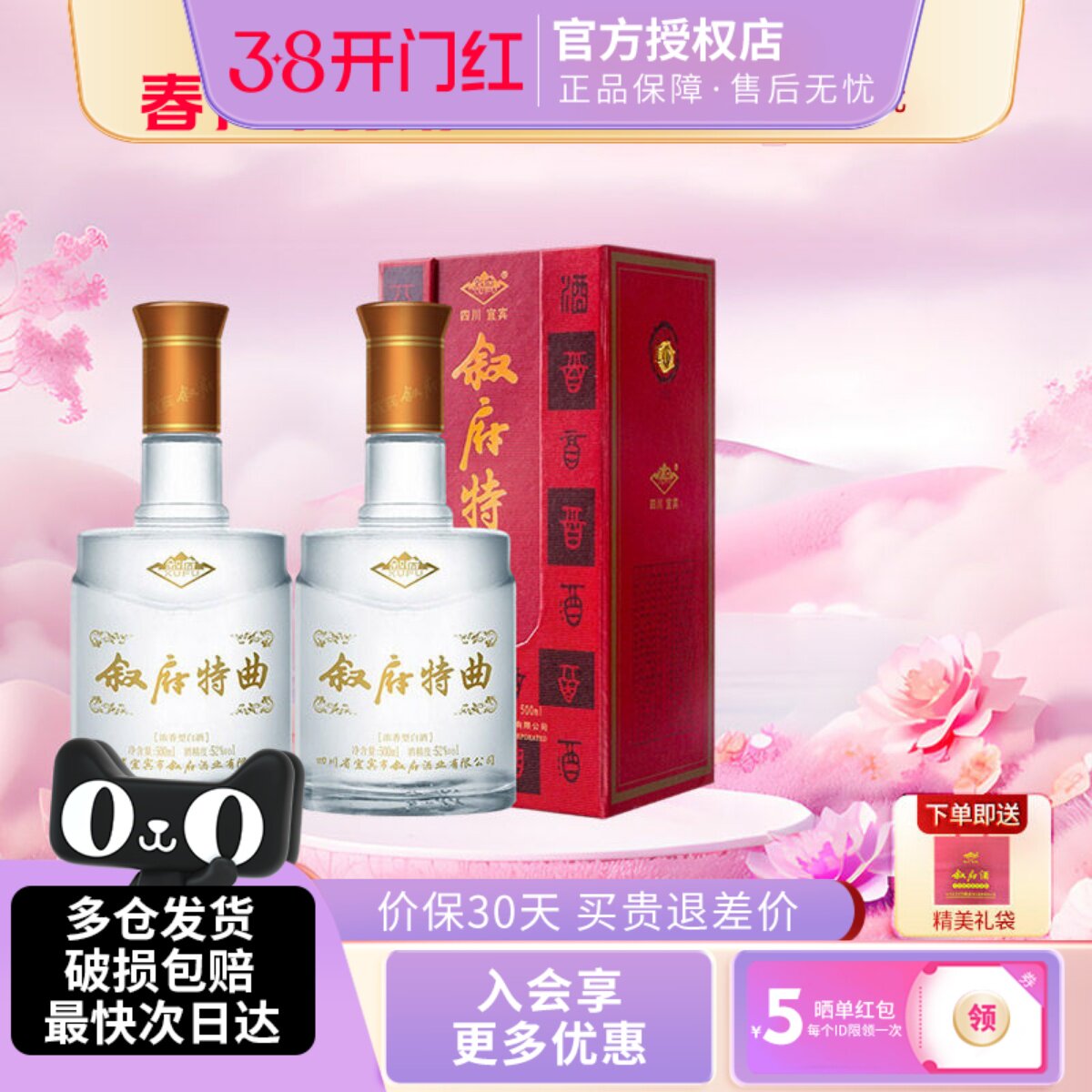 📚 宜宾叙府特曲国产52度500ml*2瓶纯五粮酿造浓香型白酒水正品