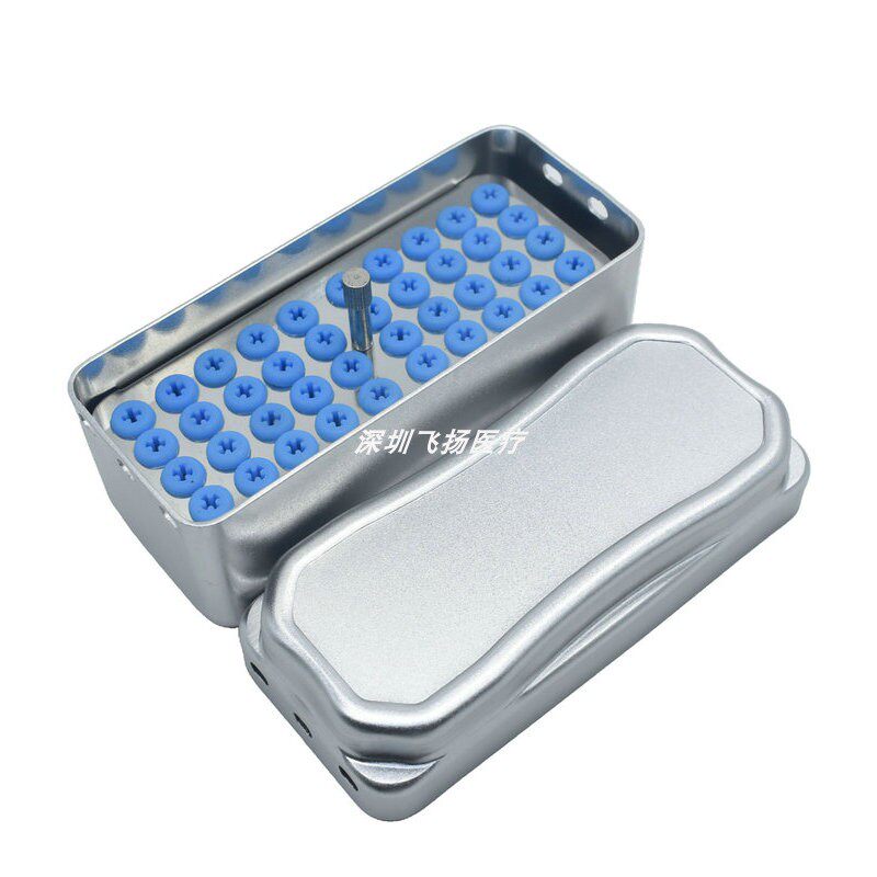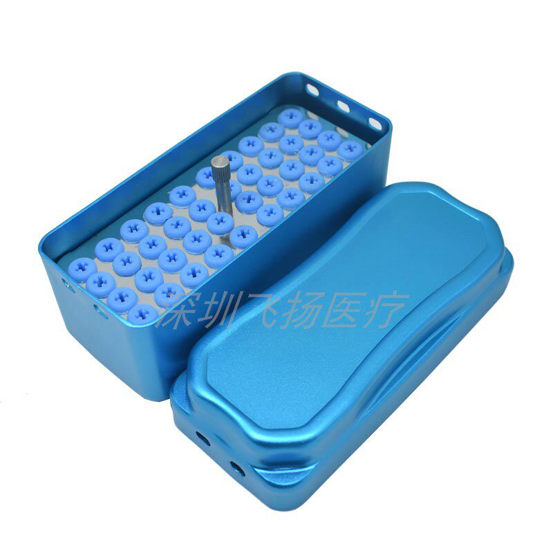 📚 牙科40孔硅胶孔金属消毒盒铝合金磨头高低速车针架口腔空芯车针盒