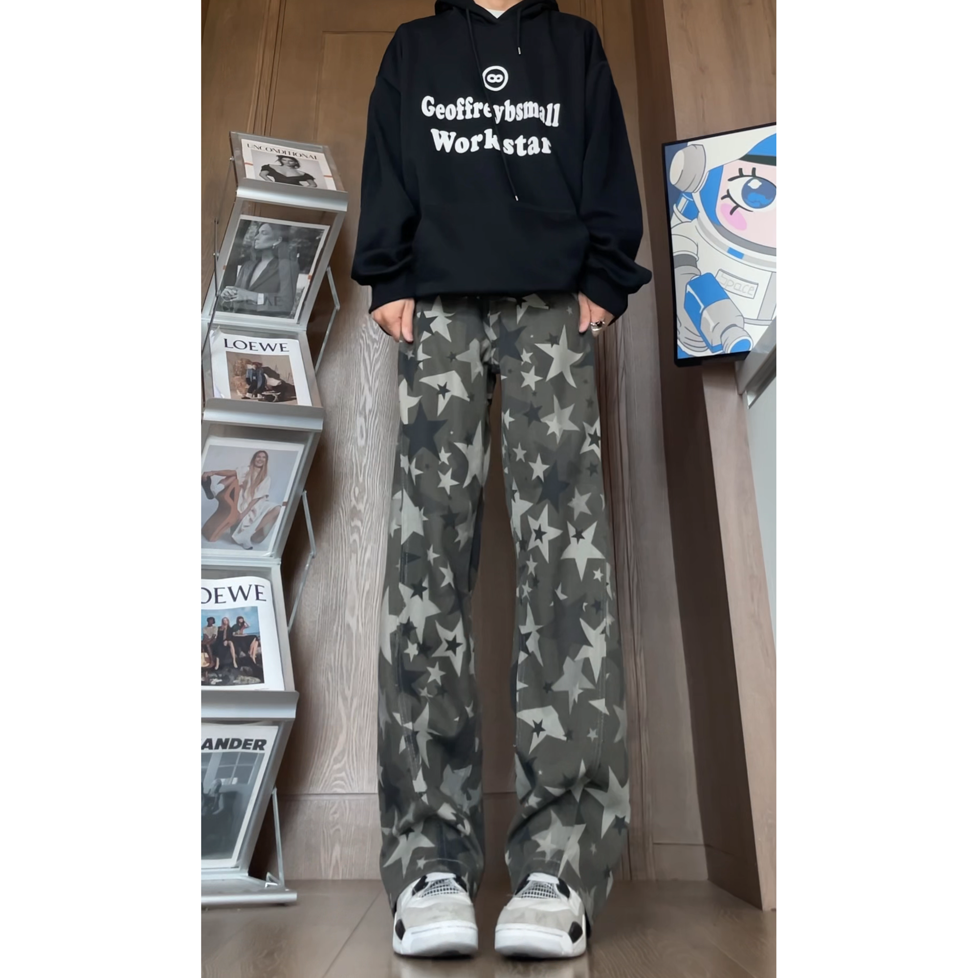 📚 GEOFFREY B.SMALL美式星星满印牛仔裤高街显瘦百搭休闲迷彩长裤