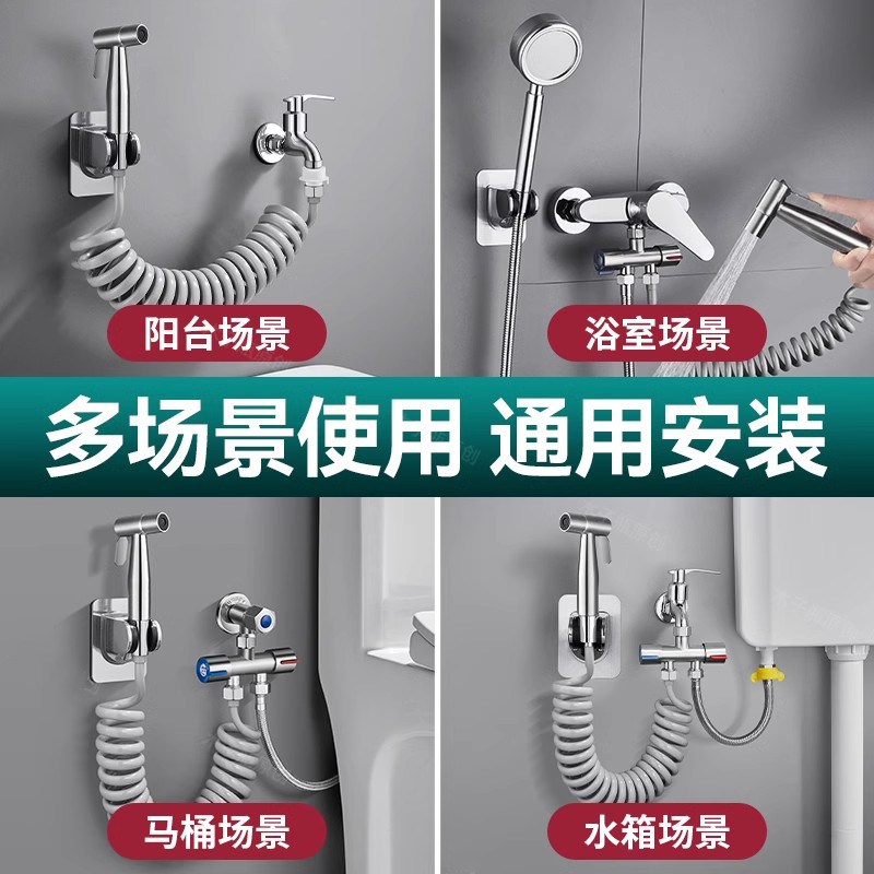 📚 全铜马桶伴侣冲洗喷枪水龙头一进二出家用厕所卫生间手持高压水枪