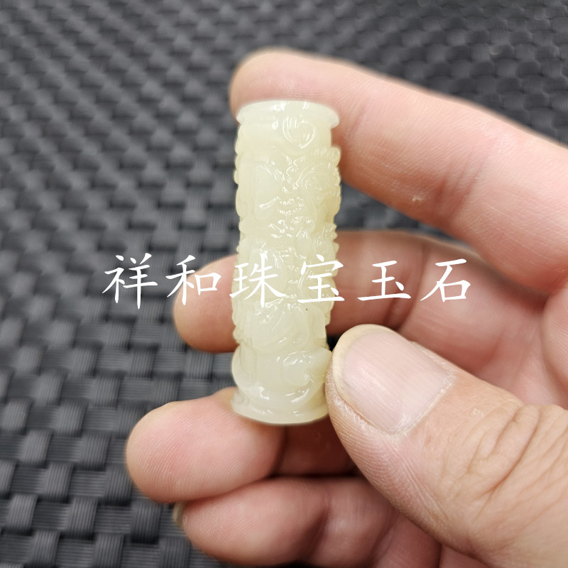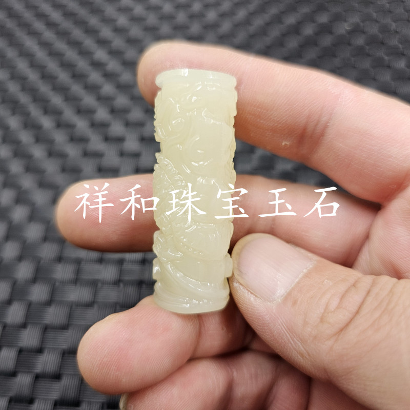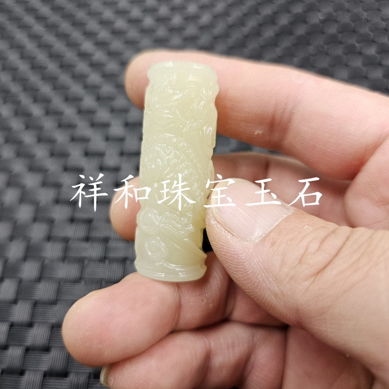 📚 新疆和田方解石玉龙柱玉石挂件黄白色生肖龙吊坠项链坠玉坠