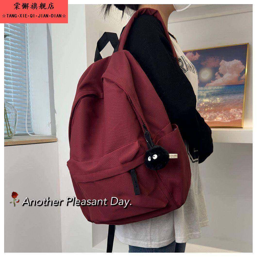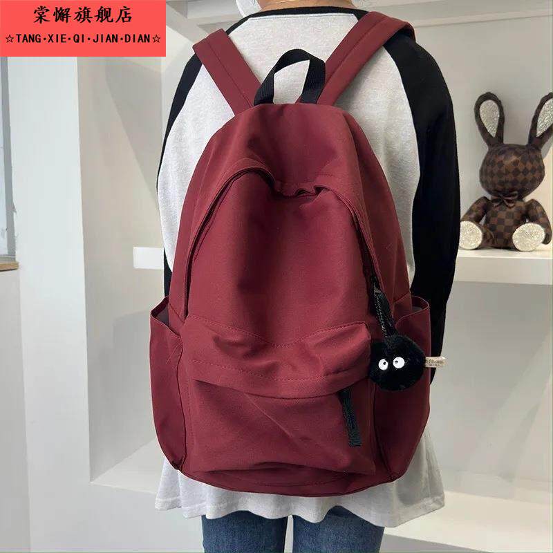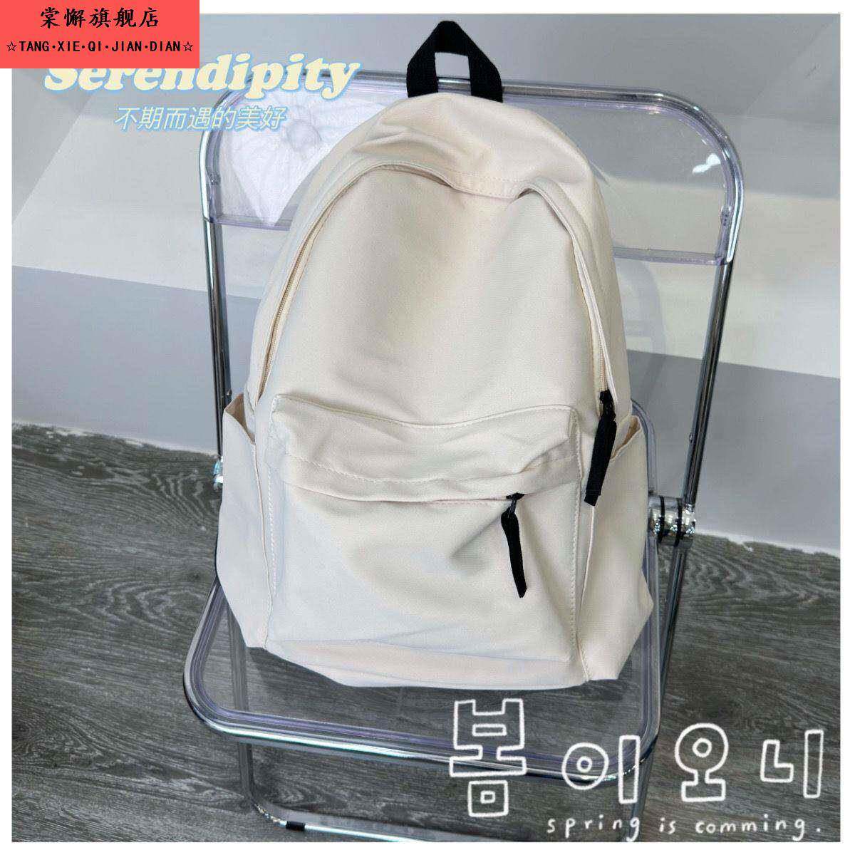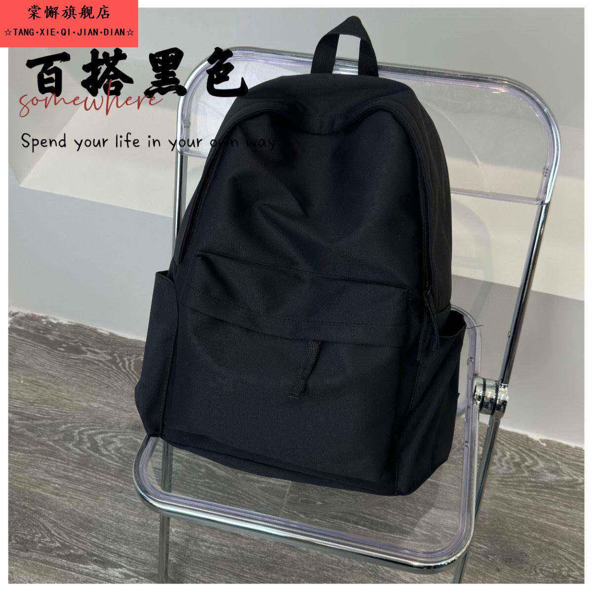 📚 韩版ins书包女中学生大容量简约纯色背包初中高中大学生双肩包男