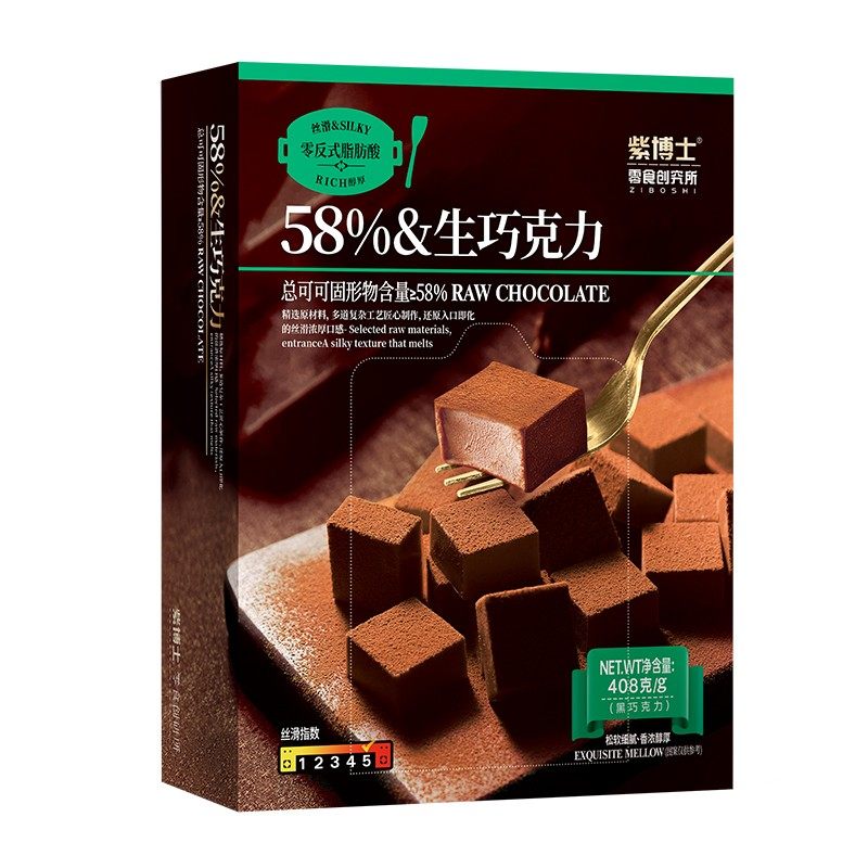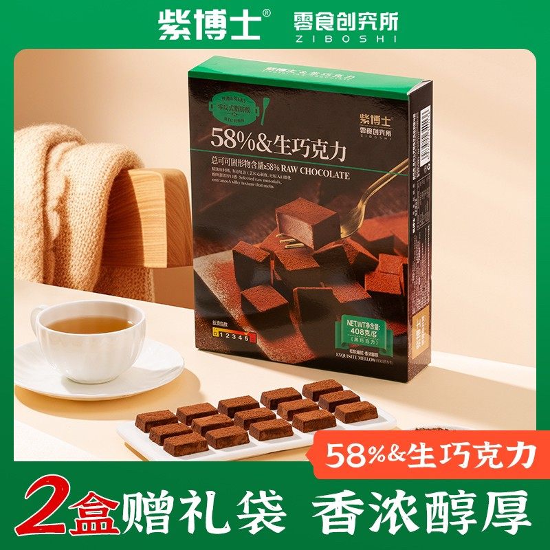 📚 紫博士 58%可可脂生巧巧克力408g盒装高颜值网红解馋休闲零食品