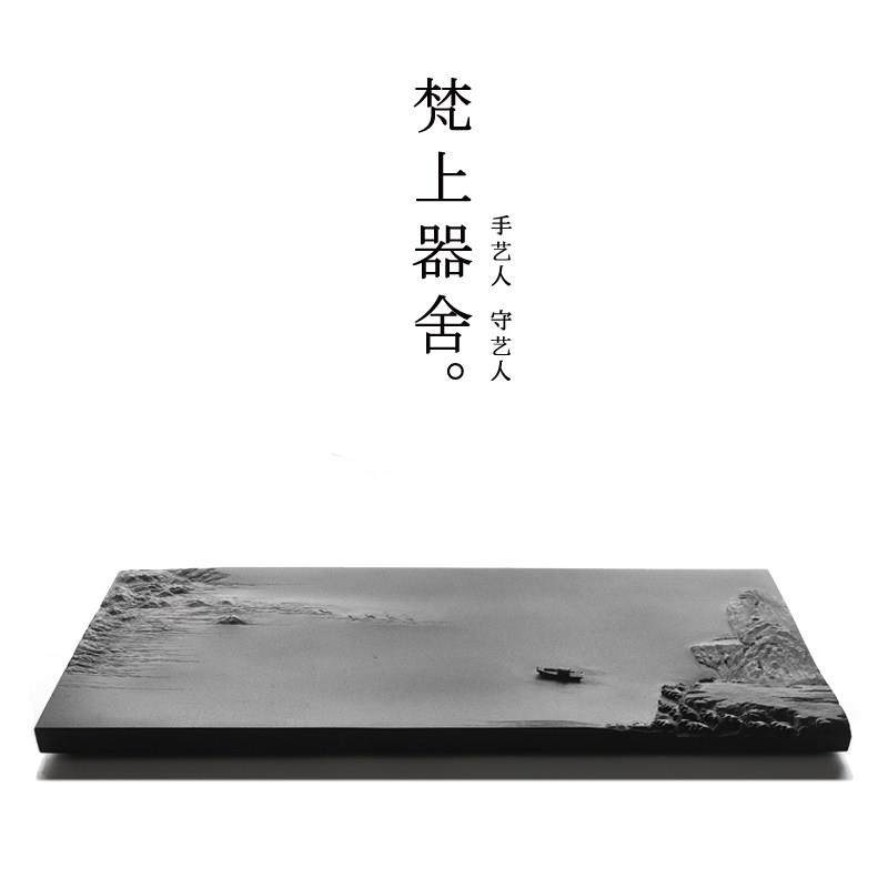 📚 天然乌金石茶盘客厅家用高档办公室小型石头茶台石盘茶海茶具托盘