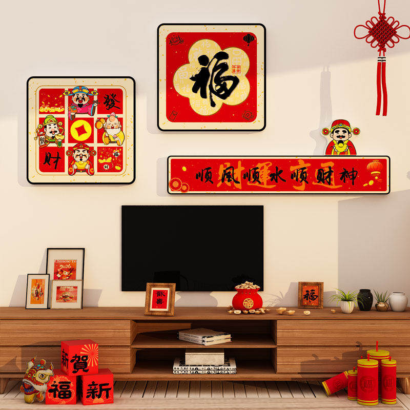 📚 2026马新年电视机背景墙面装饰挂件高级感点缀贴画氛围布置拐转角