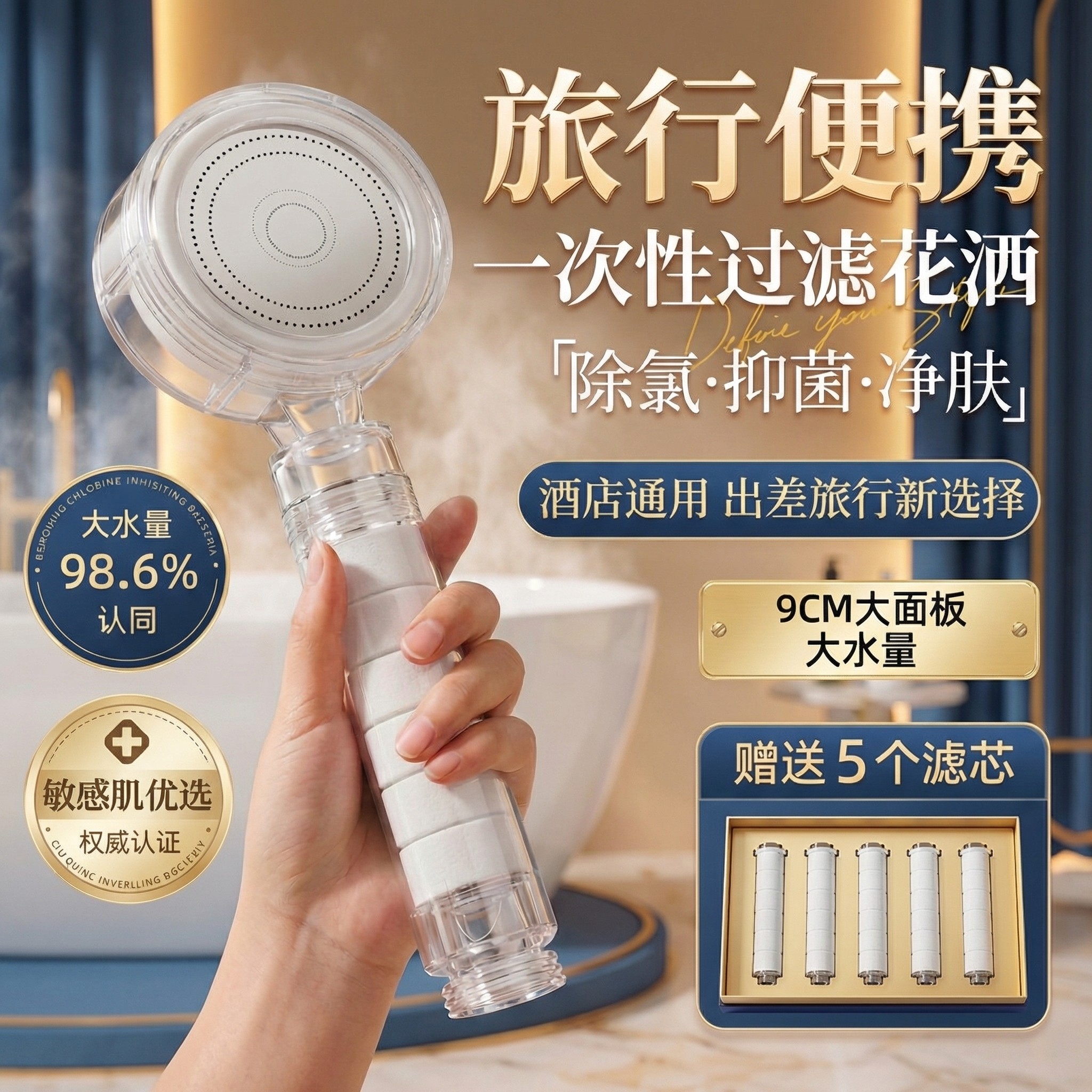 📚 一次性花洒过滤器巴厘岛加压印尼泰国旅行淋浴软水便携式邮轮酒店