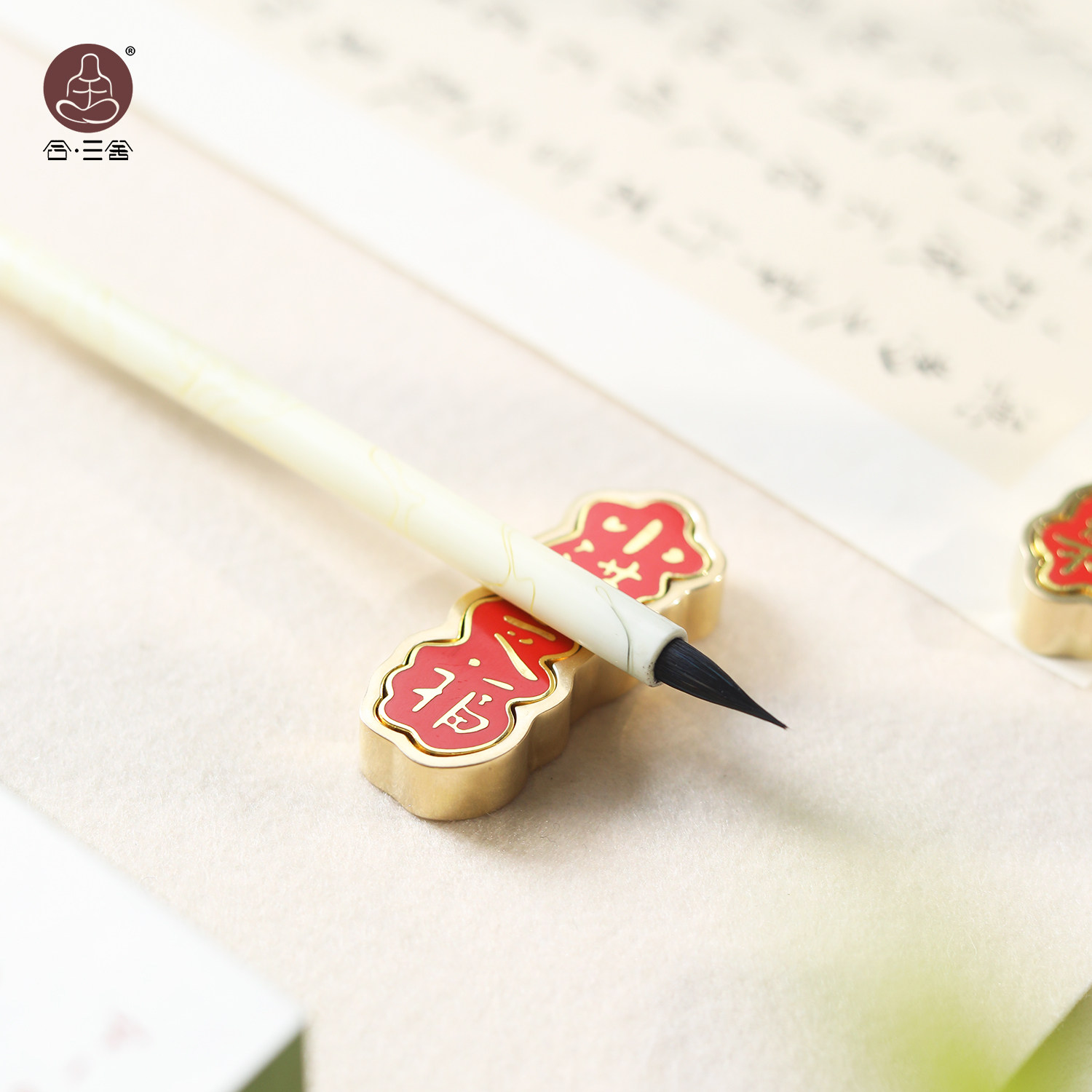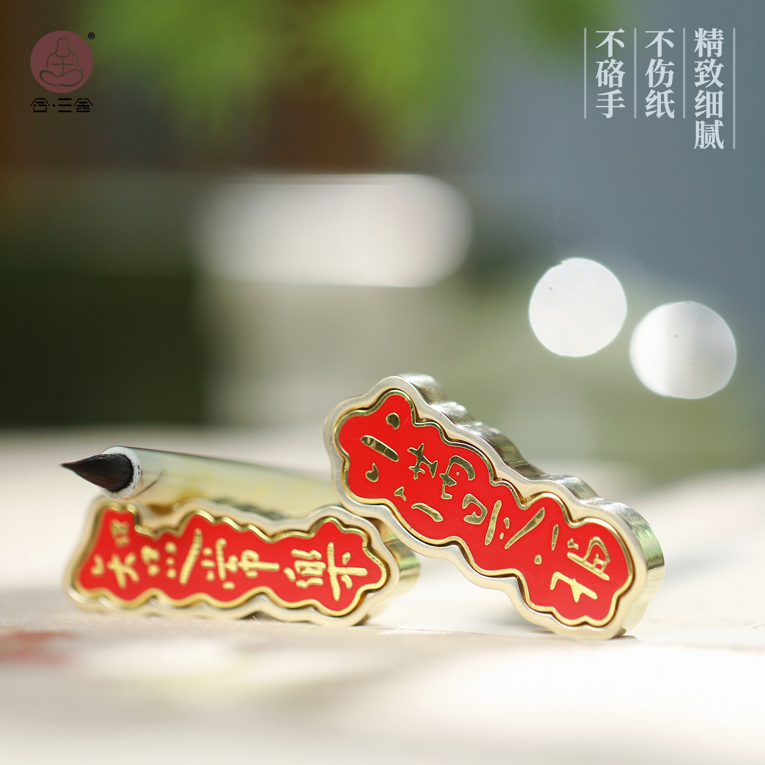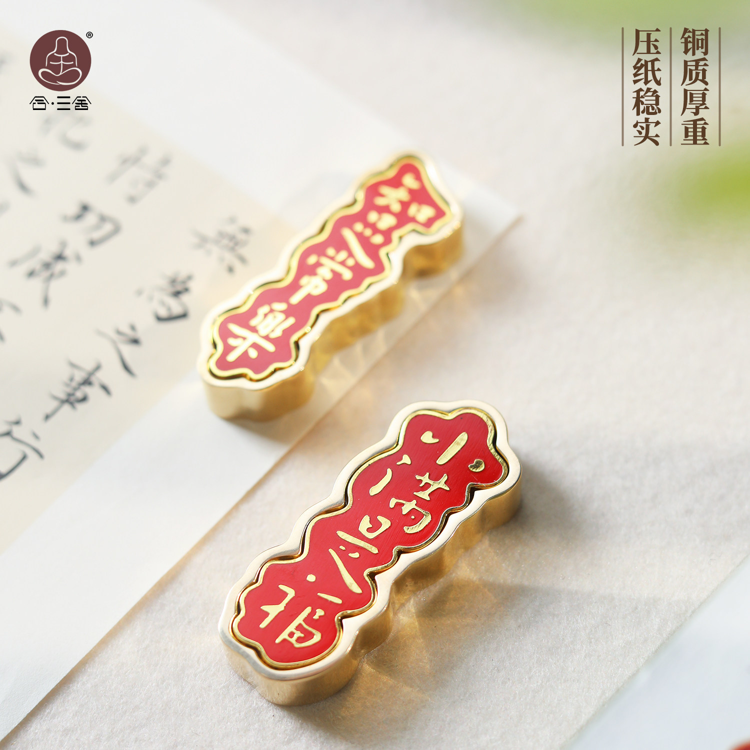 📚 合三舍 小满是福知足常乐实心黄铜镇纸镇尺文房四宝镇纸笔搁摆件书法压纸送礼礼品礼盒装