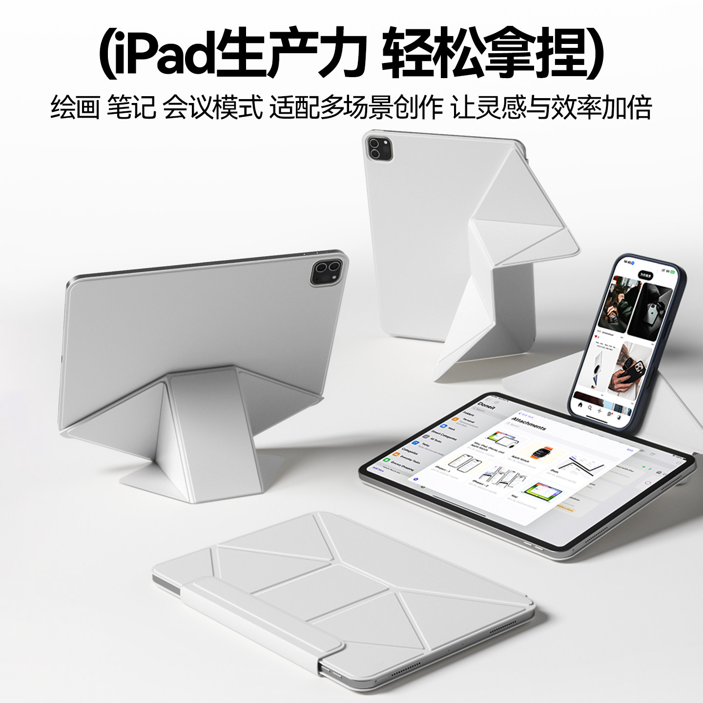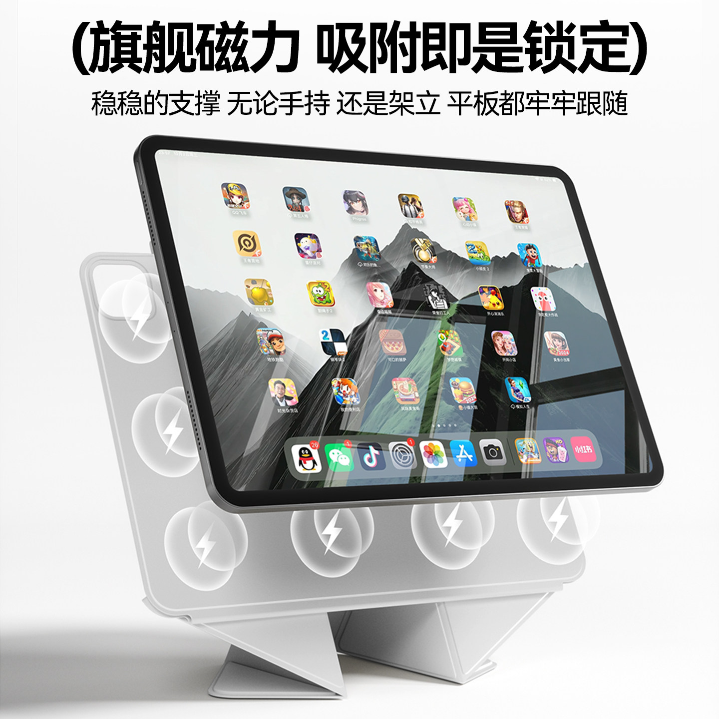 📚 zoyu新款ipadmini7保护套6磁吸双面夹ipadpro保护壳增高支架air4/5防弯13/12.9寸轻薄无框2025拆分笔槽10代11