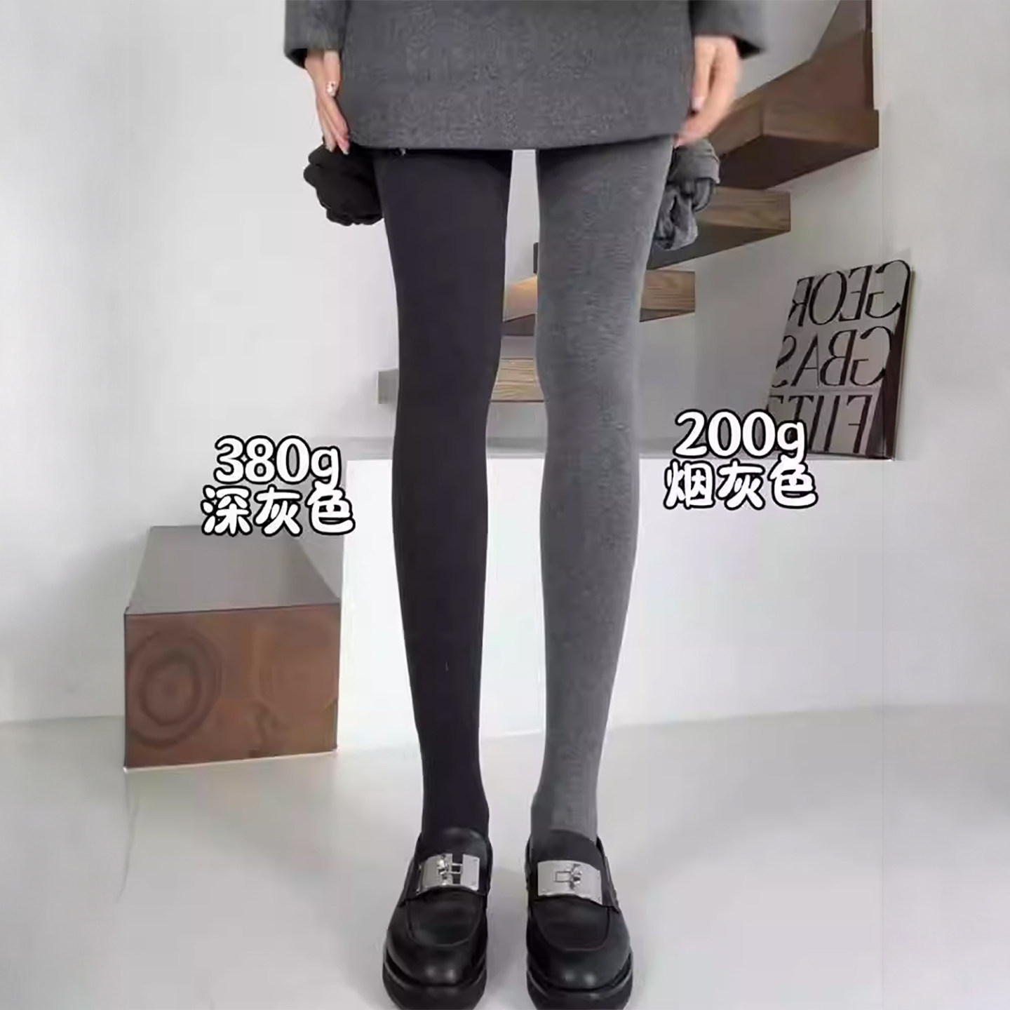📚 灰色打底裤女秋冬季外穿高腰显瘦保暖秋裤配裙子紧身加绒连脚裤袜