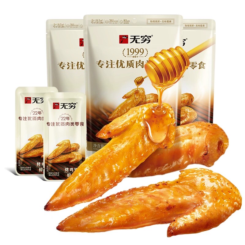 📚 无穷盐焗鸡翅爱辣味中翅小翅尖烤鸡蜂蜜味香辣味广东特产零食小吃