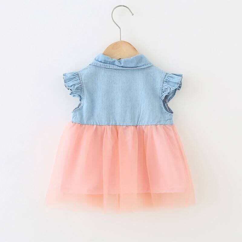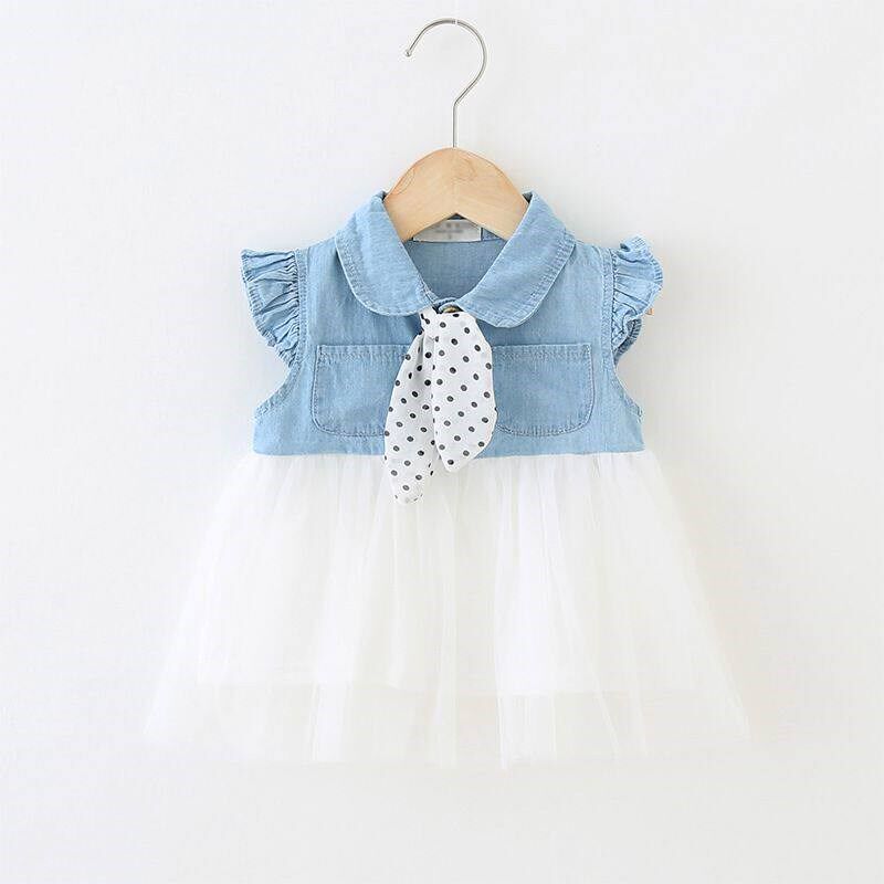 📚 Baby girl summer sleeveless dress baby girl denim stitching