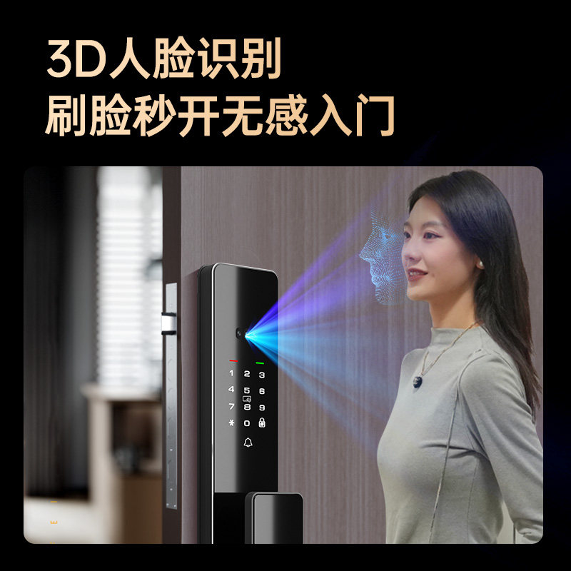 📚 Lenovo联想智能门锁3D人脸识别指纹锁家用入户防盗门密码锁带监控