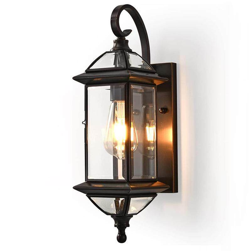 📚 境古焊锡铜古壁灯防水W23012户外复灯跨灯门廊庭院别墅灯透明玻璃