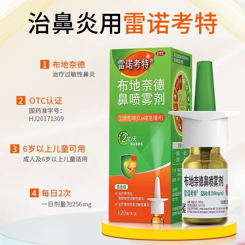 📚 雷诺考特 布地奈德鼻喷雾剂32μg*120喷季节性鼻炎常年性过敏鼻炎