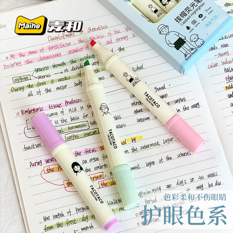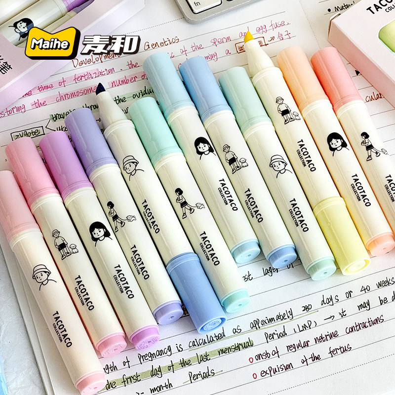 📚 TacoTaco荧光笔学生用大容量高颜值彩色标记笔护眼淡色系重点记号笔手帐复古莫兰迪色系做笔记手账画多色彩笔