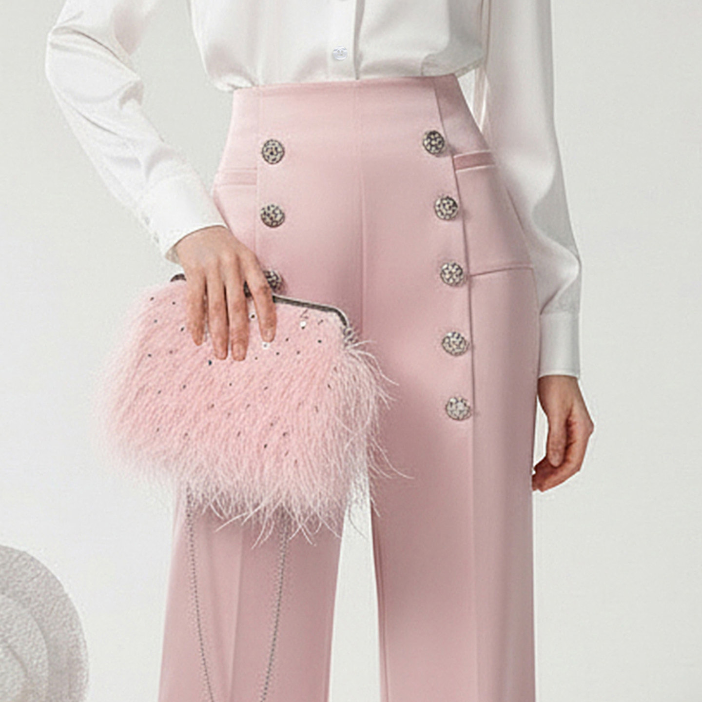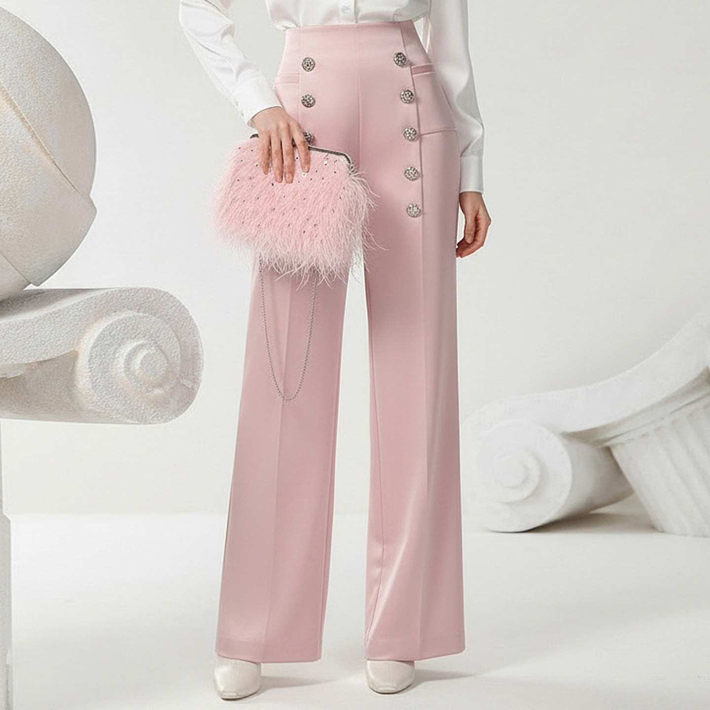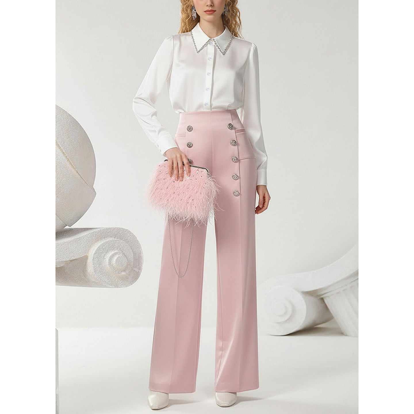 📚 茬客【粉黛名伶】气质通勤风套装裤26春季新款缎面衬衣金属扣长裤