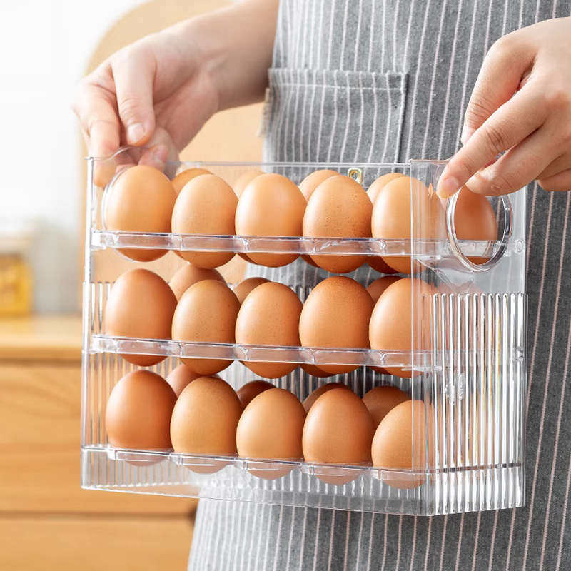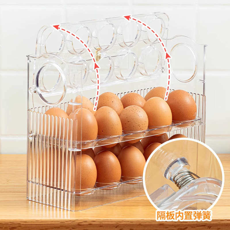 📚 冰箱侧门鸡蛋收纳盒放装鸡蛋架托专用家用保鲜厨房整理置物架翻转