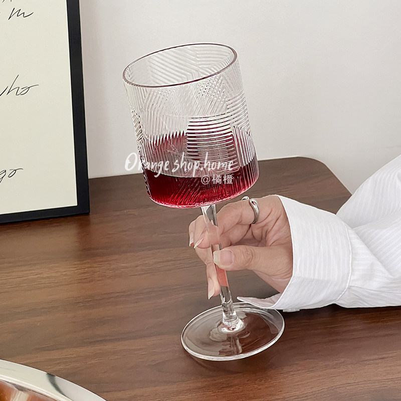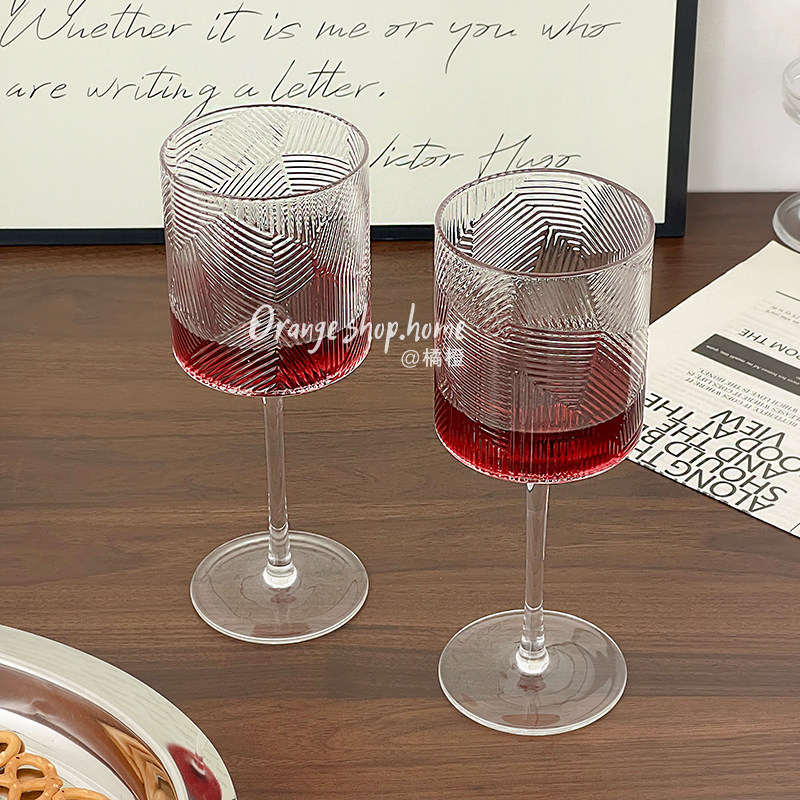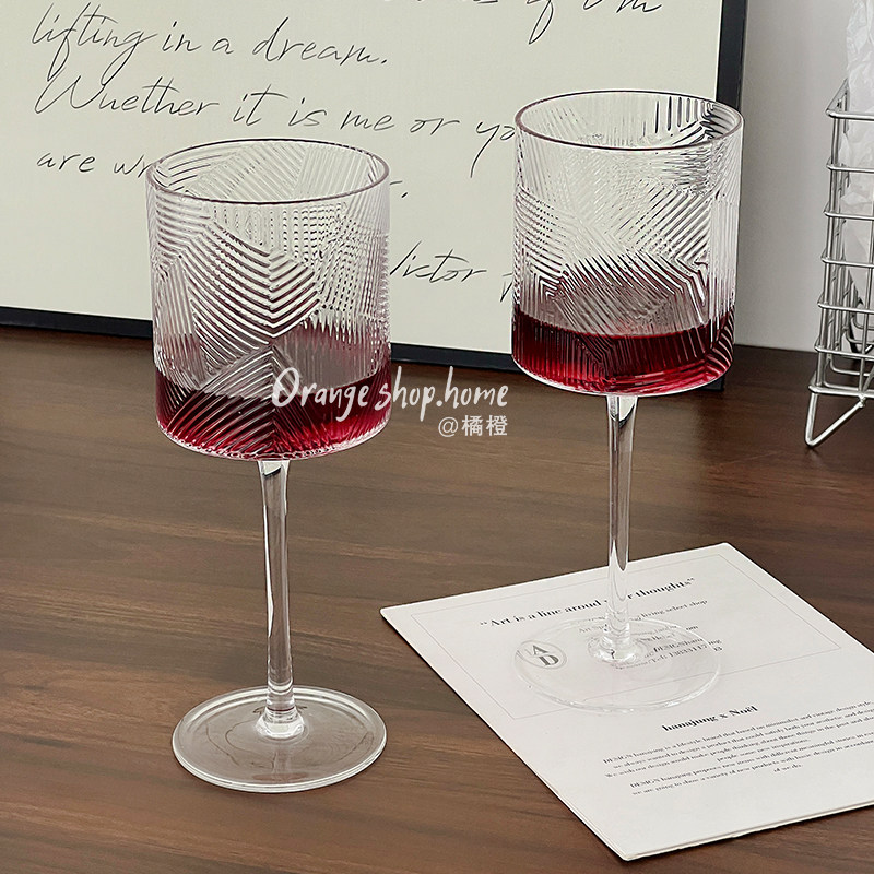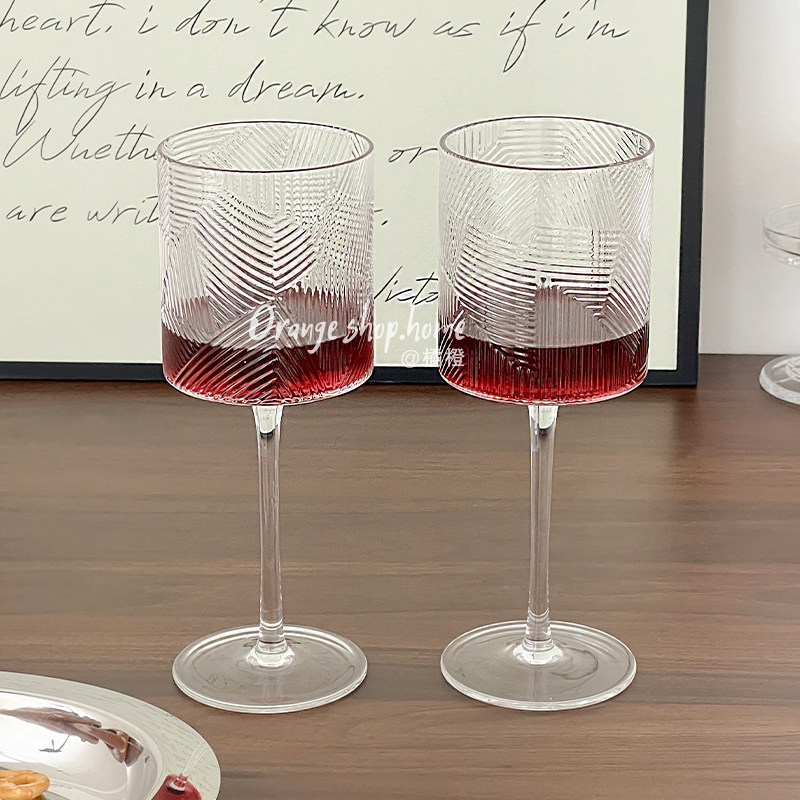 📚 树纹透明玻璃高脚杯家用高颜值红酒杯葡萄酒杯创意小众复古甜酒杯