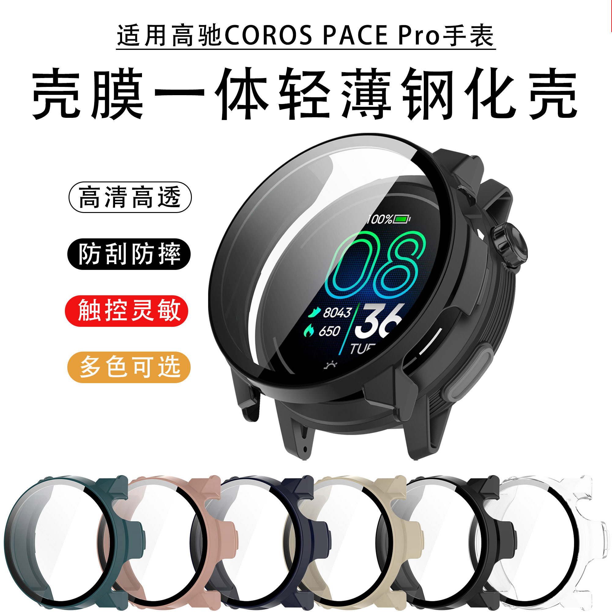 📚 适用高驰PACE Pro保护壳钢化膜壳一体全包保护套智能运动COROS高驰手表pace4/3/2/新款半包外表壳防刮摔配件