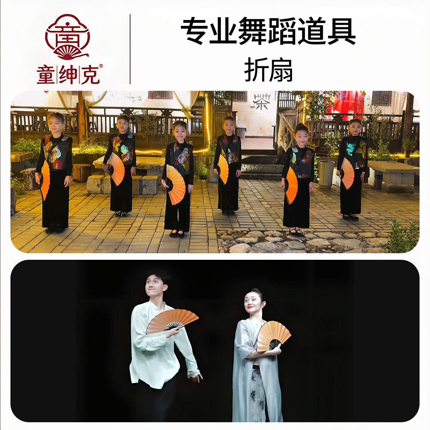 📚 登高扇子舞蹈扇儿童古风折扇橘色渐变古典舞表演演出跳舞专用道具