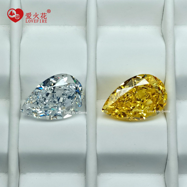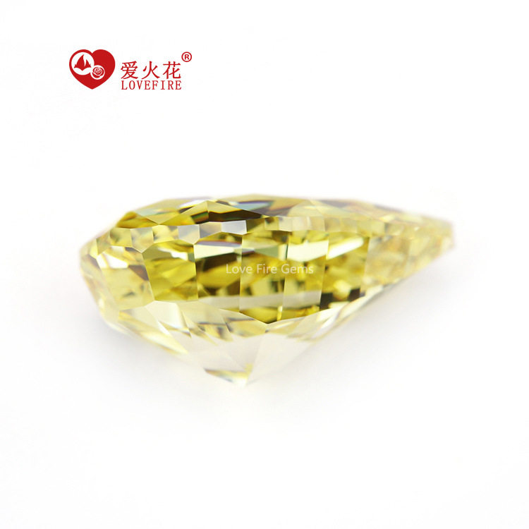 📚 梨形艳彩黄机切5A冰花切水滴形碎冰花CZ裸石黄钻戒指吊坠镶嵌美甲
