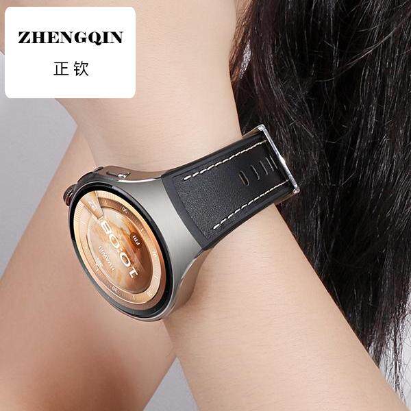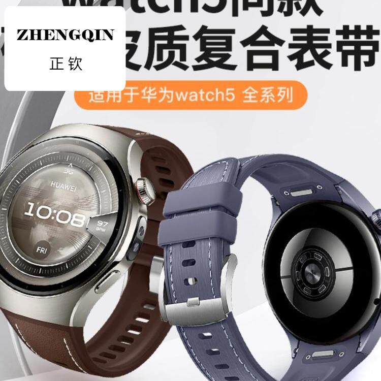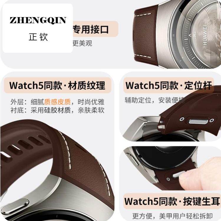 📚 适用华为watch5表带按压式46mm素皮氟橡胶42mm弧形无缝真皮男女款