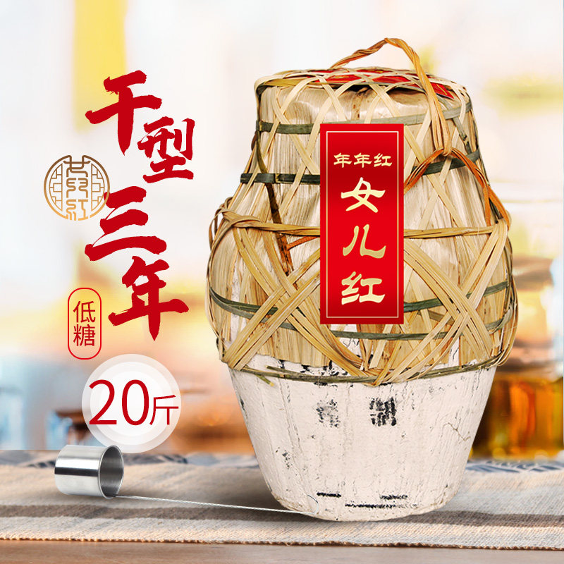 📚 女儿红20斤低糖干型坛装绍兴黄酒手作糯米花雕原酒月子泡阿胶老酒