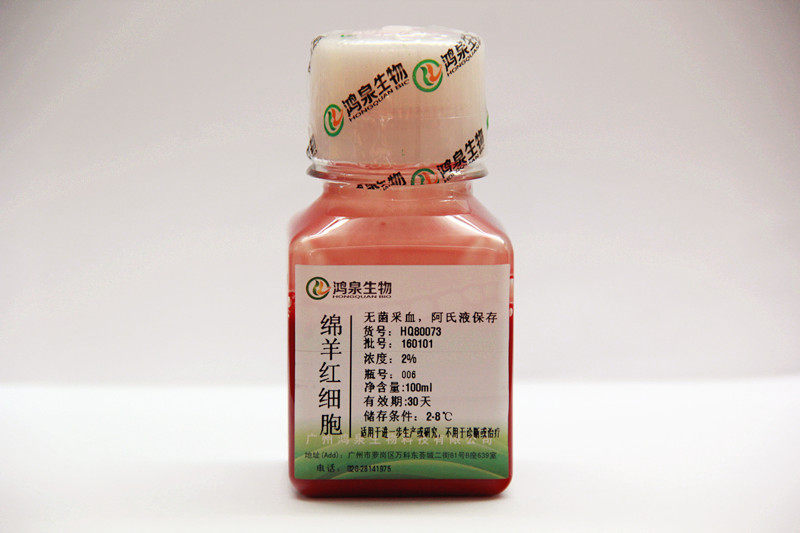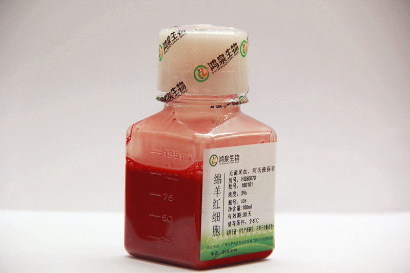 📚 20%50%绵羊红细胞100ml新鲜无菌HC50溶血试验科研用试剂鸿泉生物