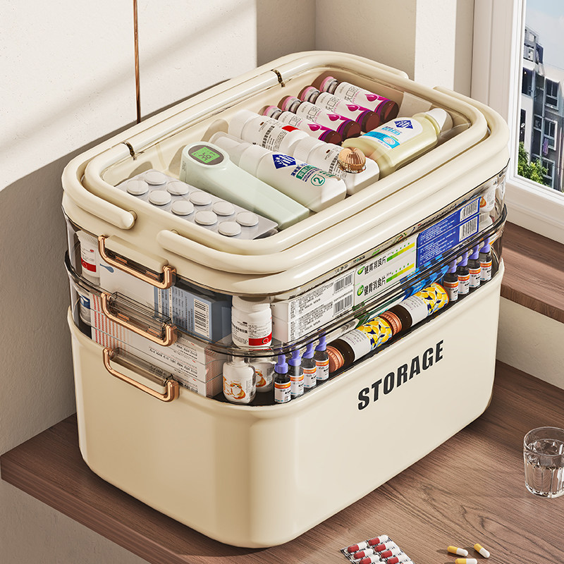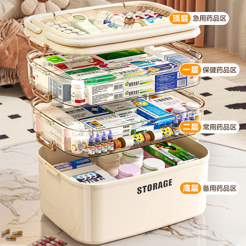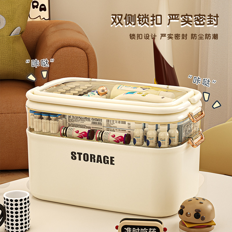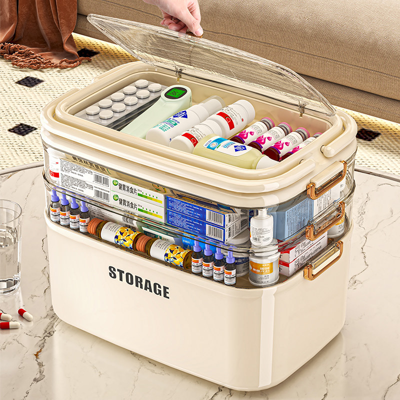 📚 寻淮大号家用药箱儿童药急救药带隔层分区收纳箱防尘带把手医疗箱