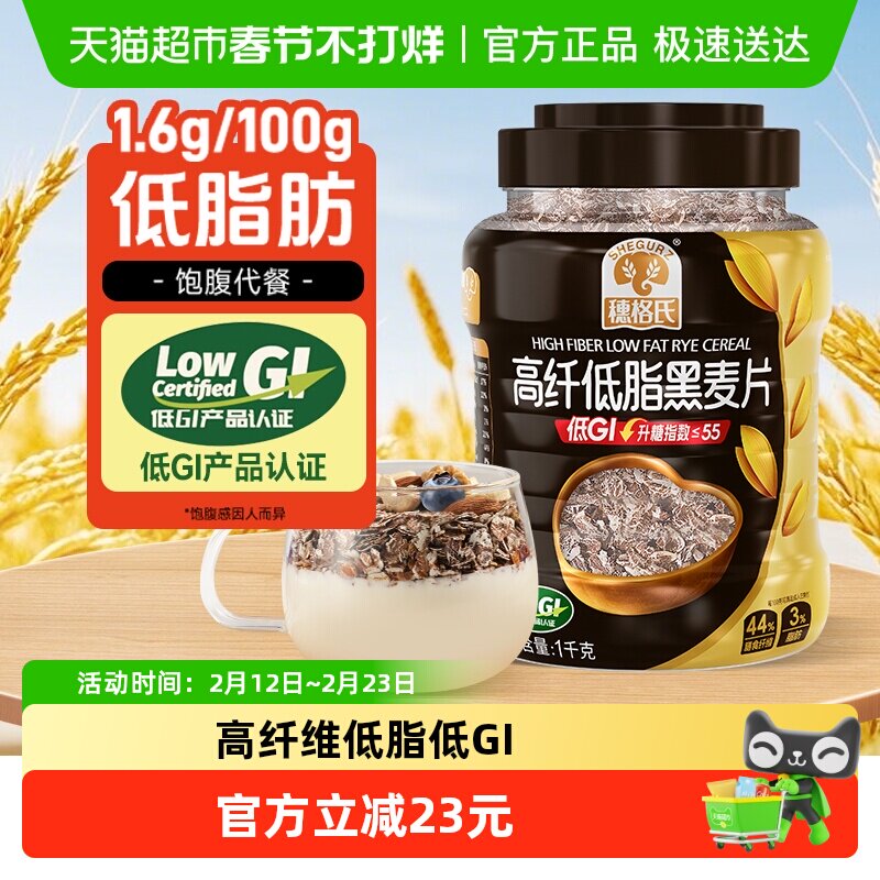 📚 SHEGURZ/穗格氏高纤黑麦片罐装营养早餐低脂燕麦片低GI认证