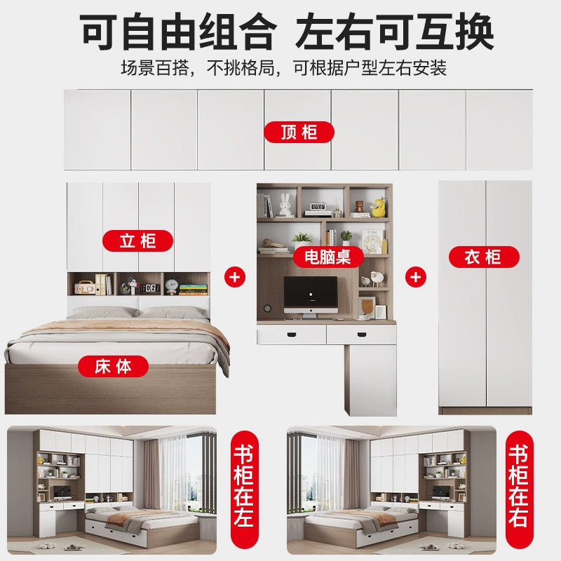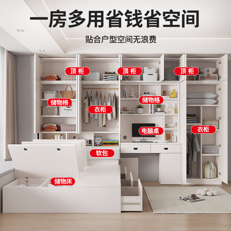 📚 榻榻米衣柜床一体小户型实木儿童床多功能床卧室带书桌组合衣柜床