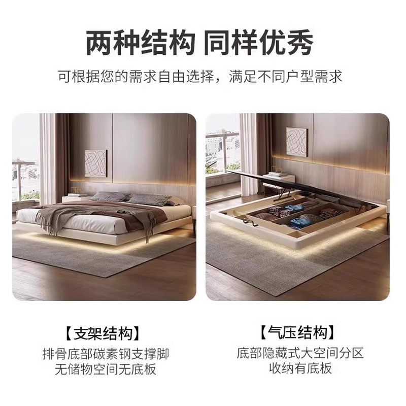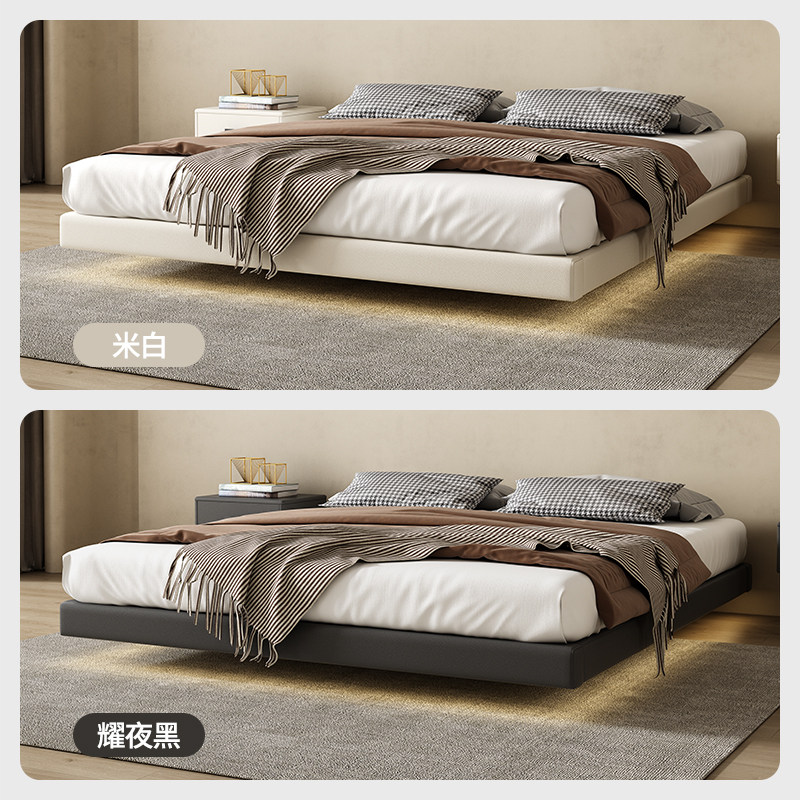 📚 无床头悬浮真皮床轻奢现代简约主卧双人2米x2米2网红实木悬空床架