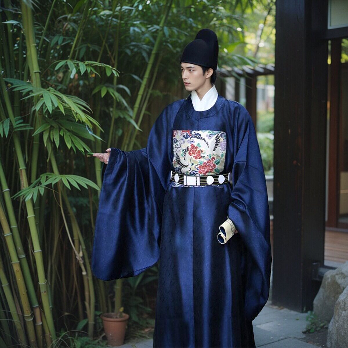👔款式介绍:这款圆领袍明制大臣丞相宰仙鹤一品官服少爷服,简直太有中国风韵了!它的设计简约而不失优雅,穿上身显得非常得体。