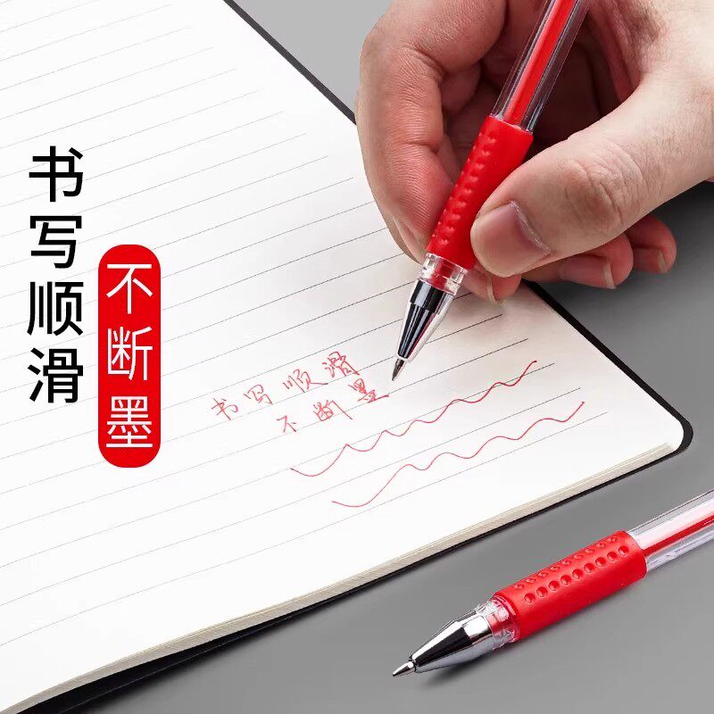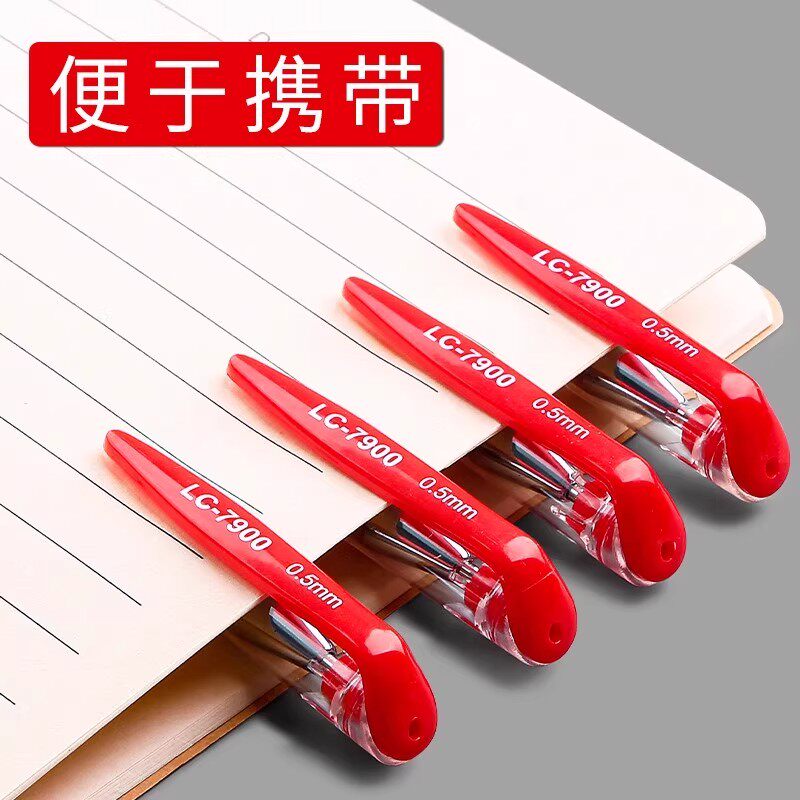 📚 红笔老师专用批改作业水笔拔帽式0.5mm文具用品做笔记签字笔水性笔碳素笔按动中性笔红笔芯圆珠笔顺滑教师
