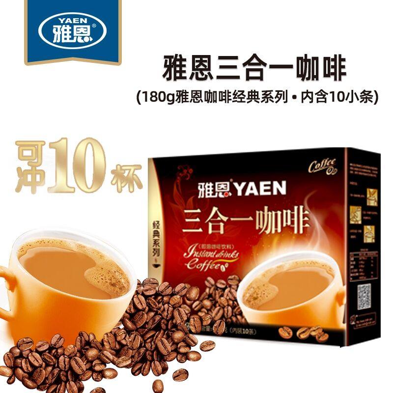 📚 雅恩三合一原味速溶咖啡卡布奇诺经典系列固体冲饮盒/180克内10条