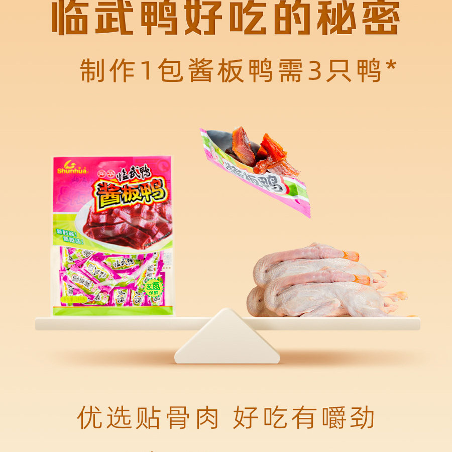 刚入手这款舜华酱板鸭时,我就被它的独特风味所吸引。它选用的是湖南临武鸭,经过充氮处理,更加鲜美入味。包装设计也很贴心,小包装方便携带,真的是非常适合我们这些吃货们!😋