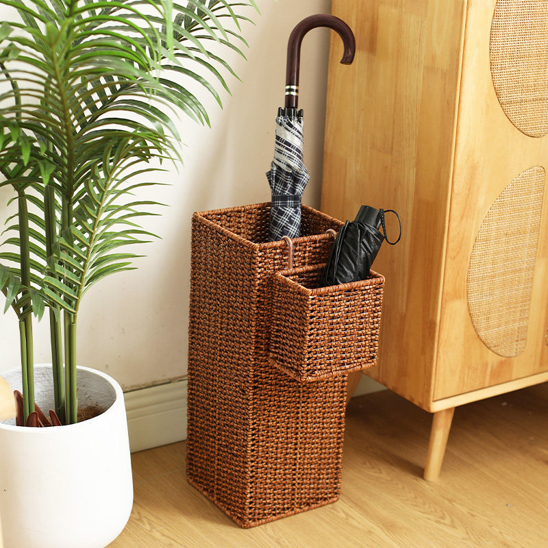 📚 中式雨伞收纳架仿藤编织家用门口落地雨伞桶玄关入户伞架置物架子