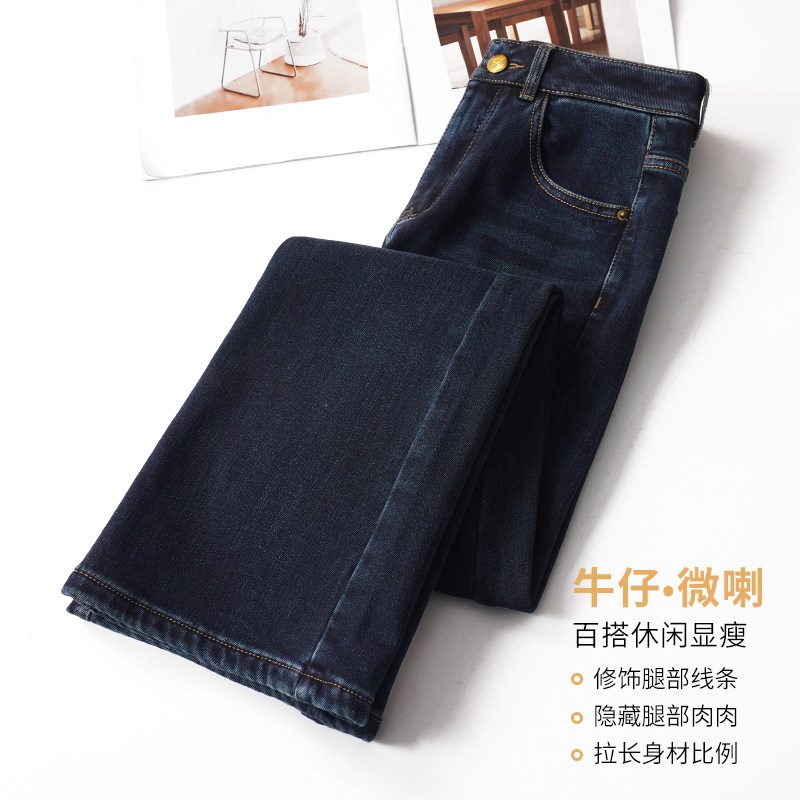 📚 加绒牛仔裤女款2025新款爆款喇叭裤百搭显瘦时尚后妈裤洋气8987
