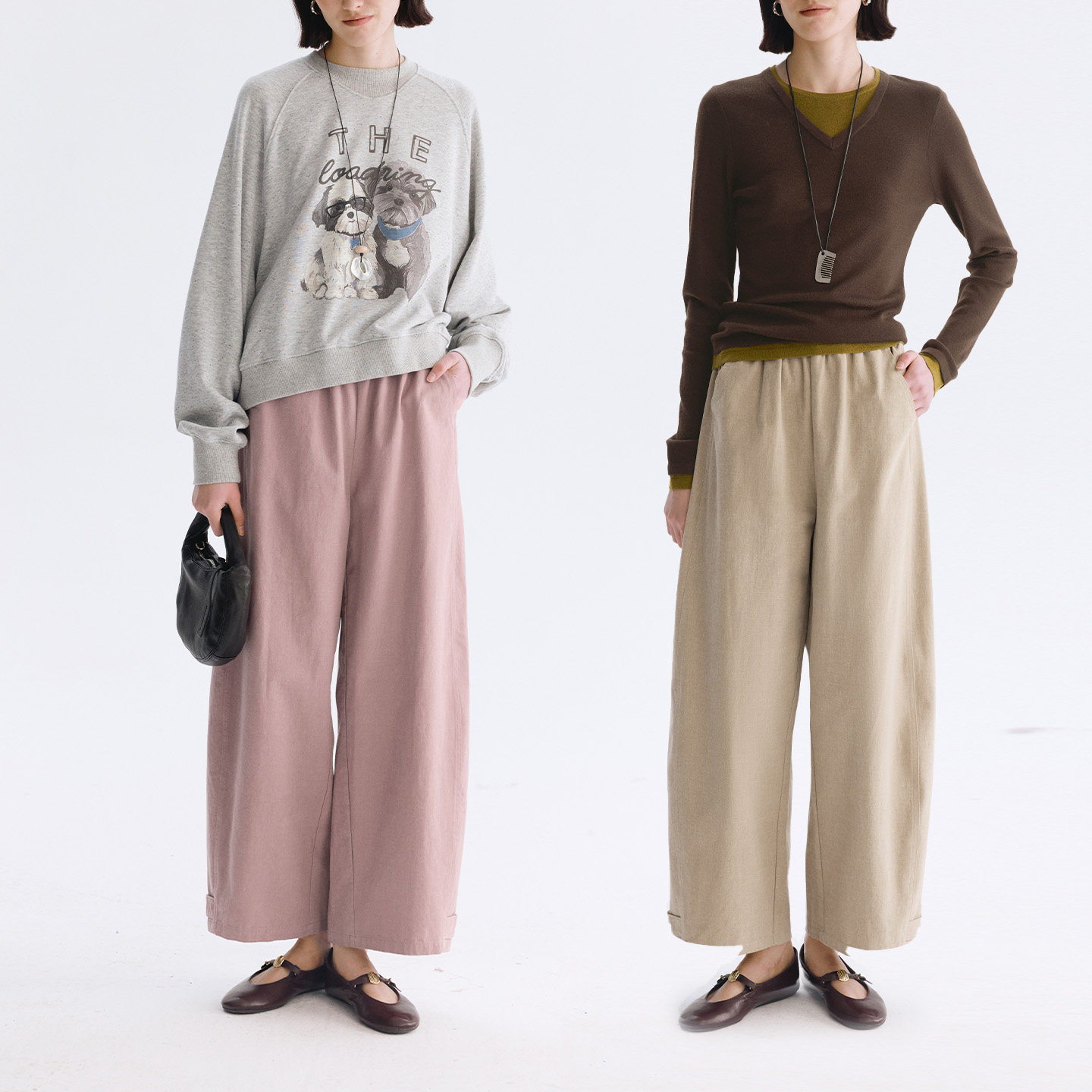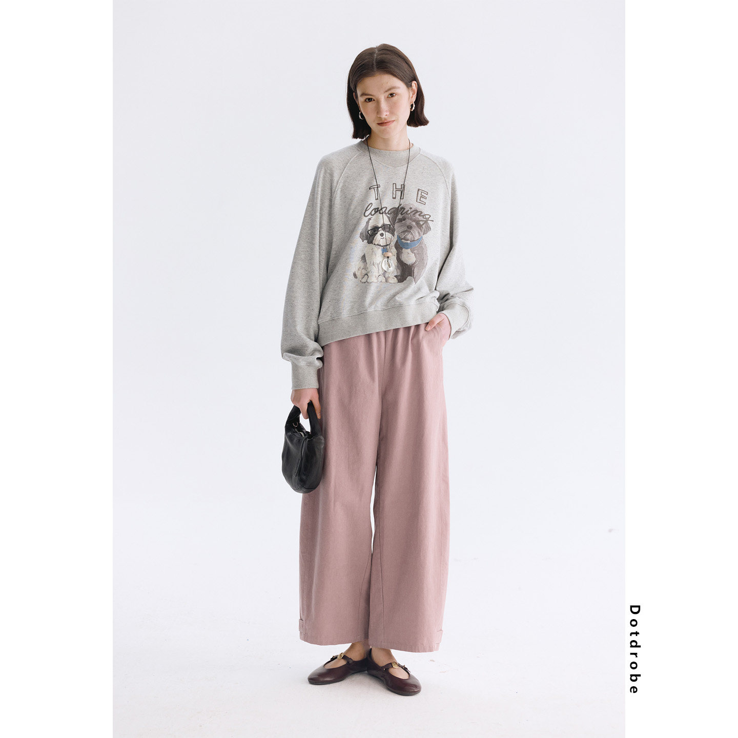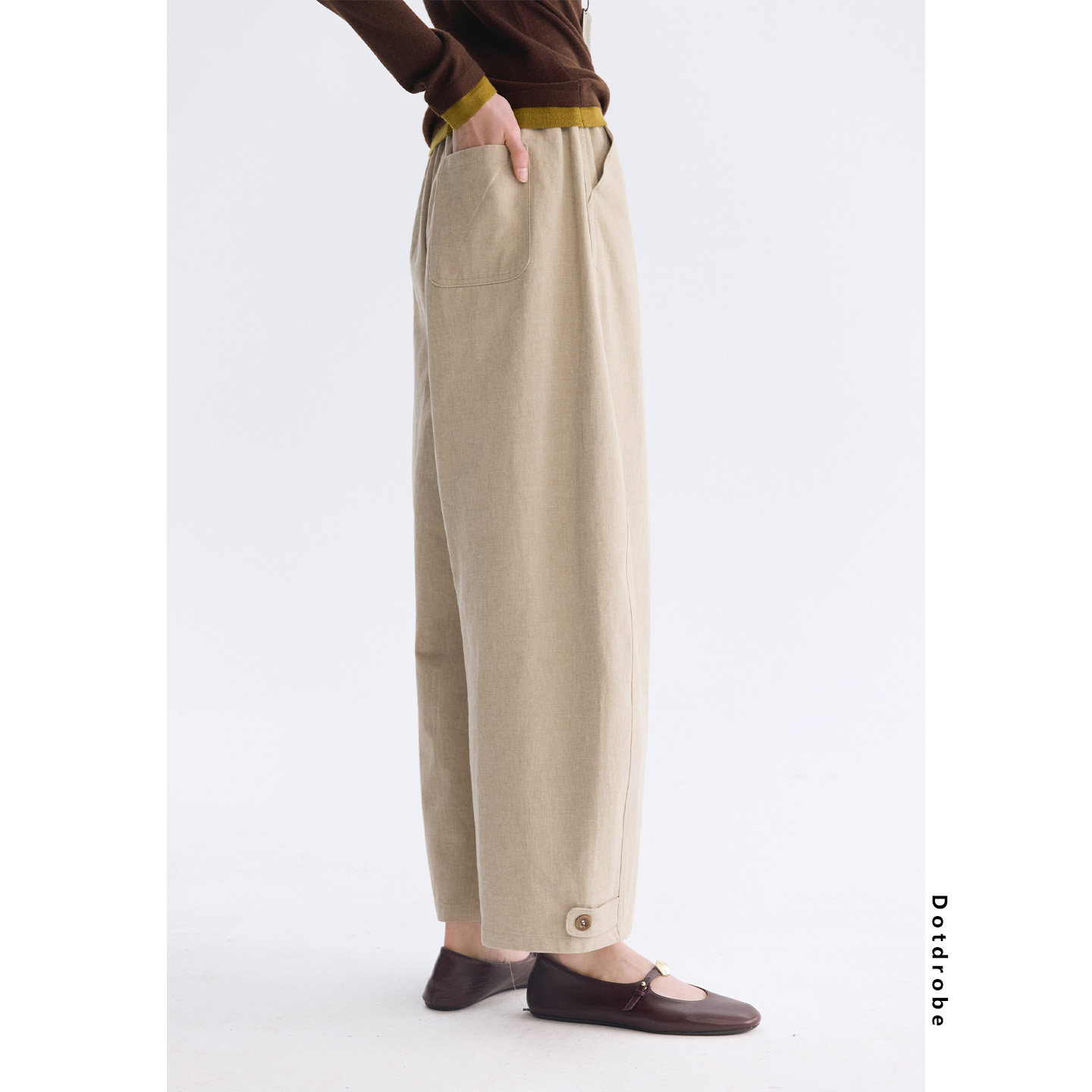 📚 Dotdrobe多着 两次水洗纯棉松紧腰弯刀休闲裤女2026春款显瘦免烫