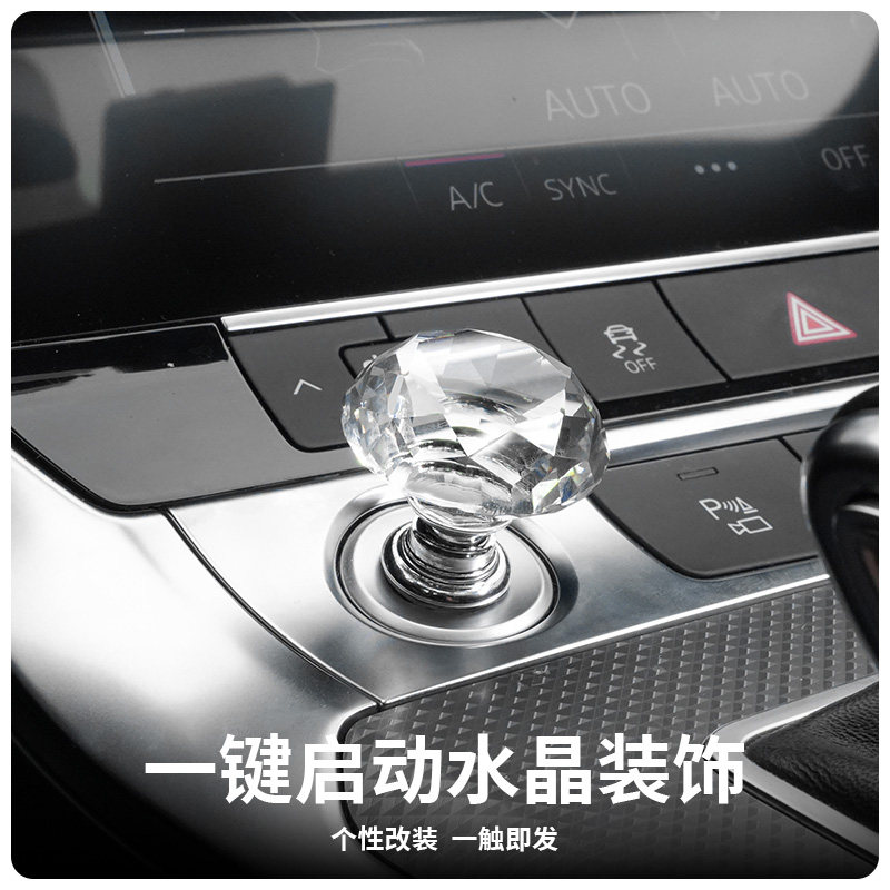 📚 汽车车内装饰品钻形玻璃金属一键启动按钮车载防指甲划伤保护贴