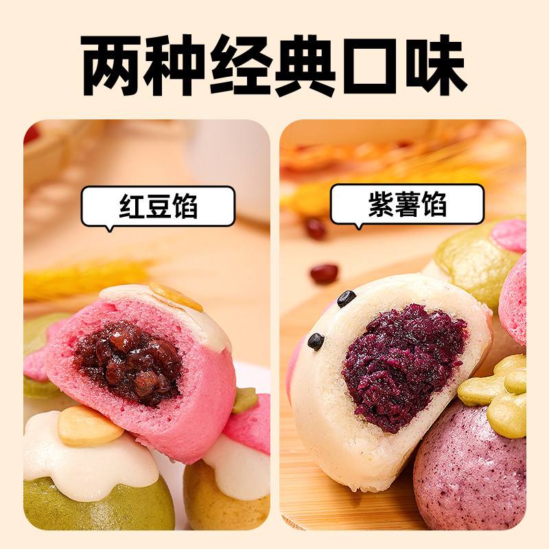 📚 锦溪麦田奶黄包儿童早餐半成品蛋仔派对猪猪卡通包豆沙包馒头果蔬